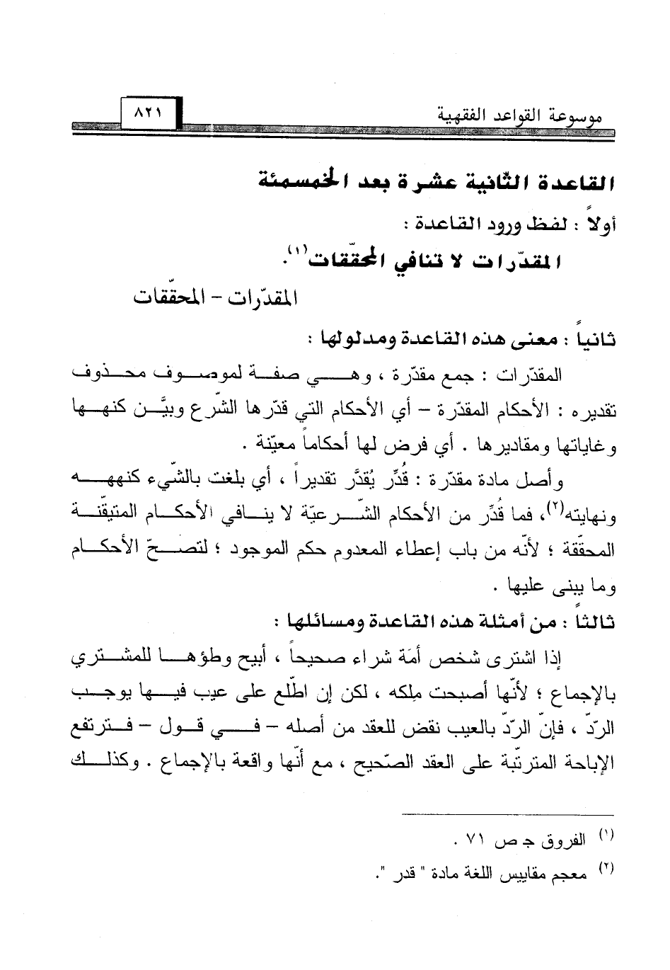 القاعدة الثّانية عشرة بعد الخمسمئة [المقدّرات - المحقّقات]