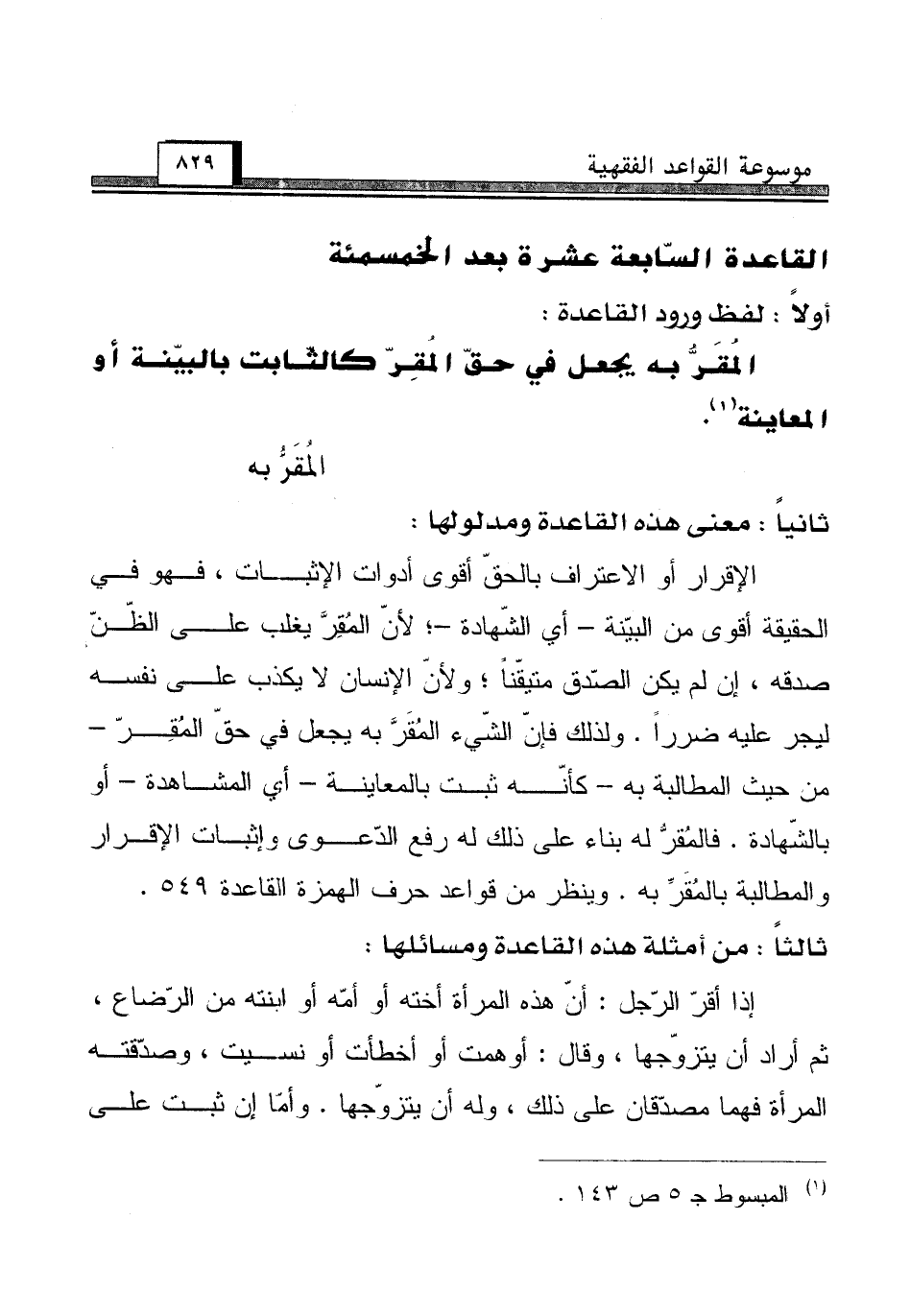 القاعدة السّابعة عشرة بعد الخمسمئة [المُقَرُّ به]