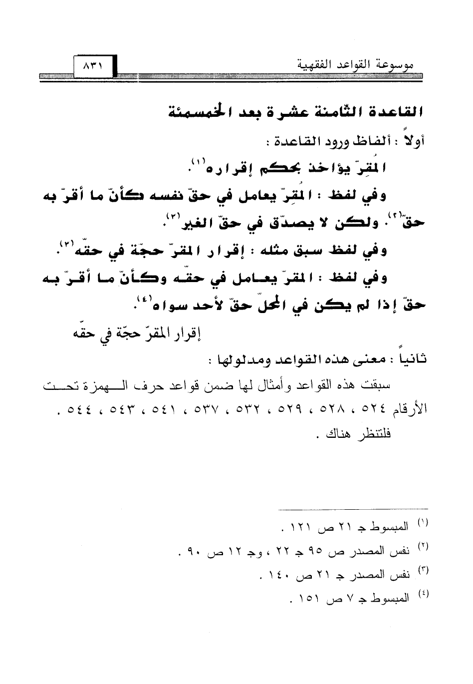 القاعدة الثّامنة عشرة بعد الخمسمئة [إقرار المقرّ حجّة في حقّه]