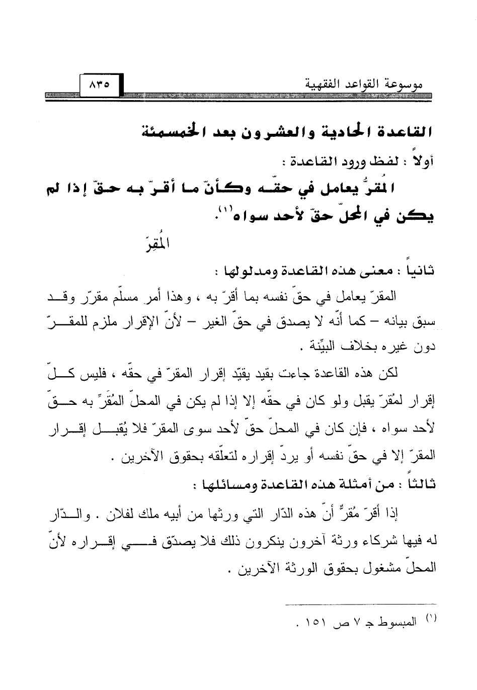 القاعدة الحادية والعشرون بعد الخمسمئة [المُقِرّ]