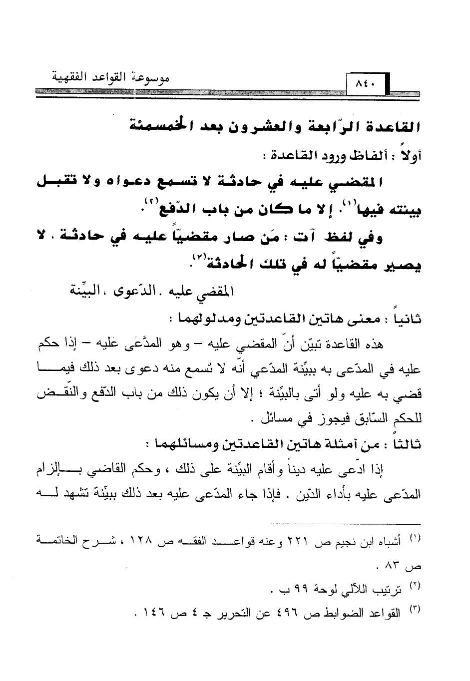 القاعدة الرّابعة والعشرون بعد الخمسمئة [المقضي عليه. الدّعوى، البيِّنة]