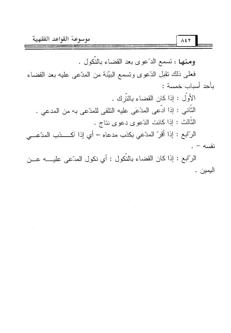 فعلى ذلك تقبل الدّعوى وتسمع البيِّنة من المدّعى عليه بعد القضاء بأحد أسباب خمسة:
