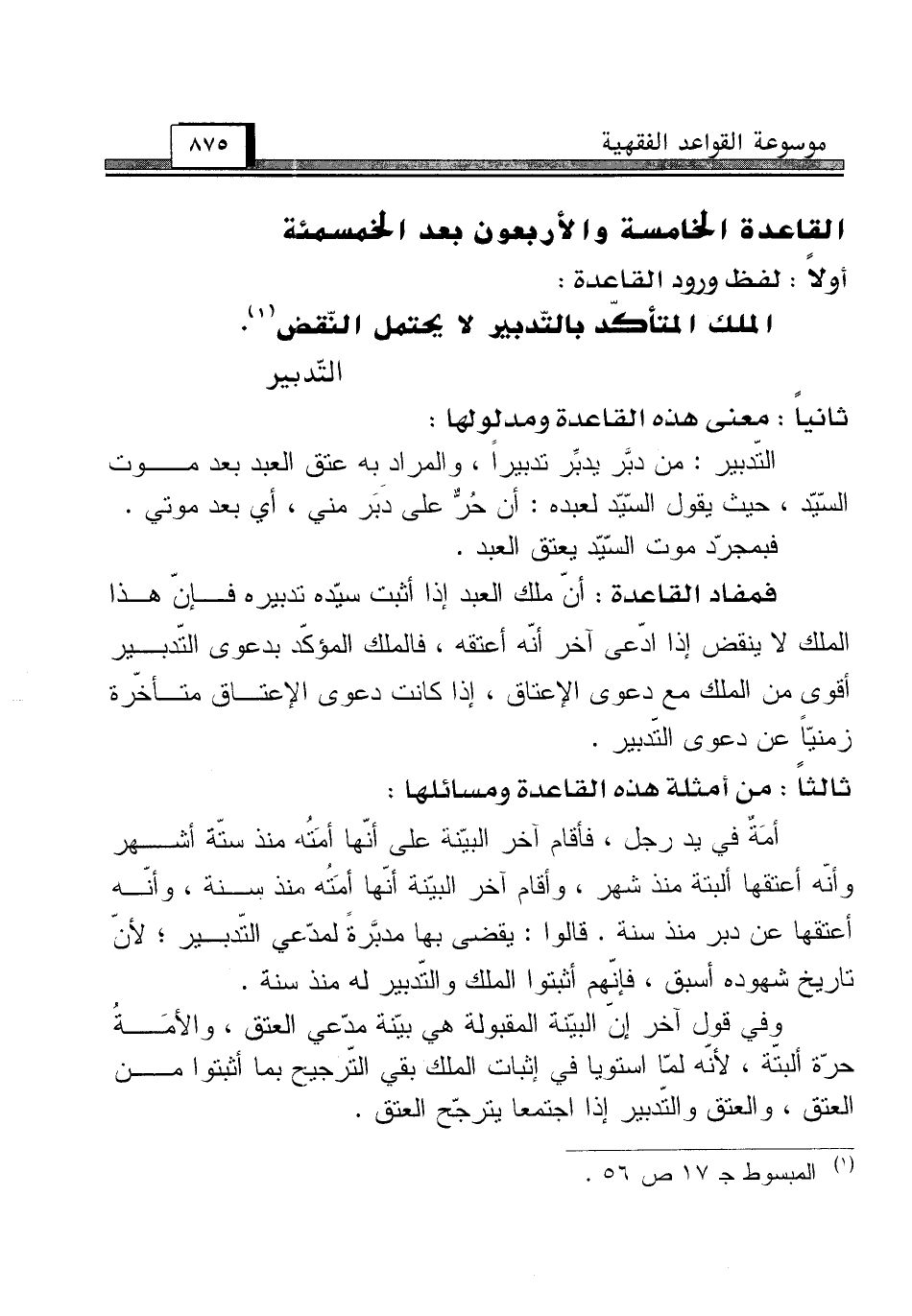 القاعدة الخامسة والأربعون بعد الخمسمئة [التّدبير]