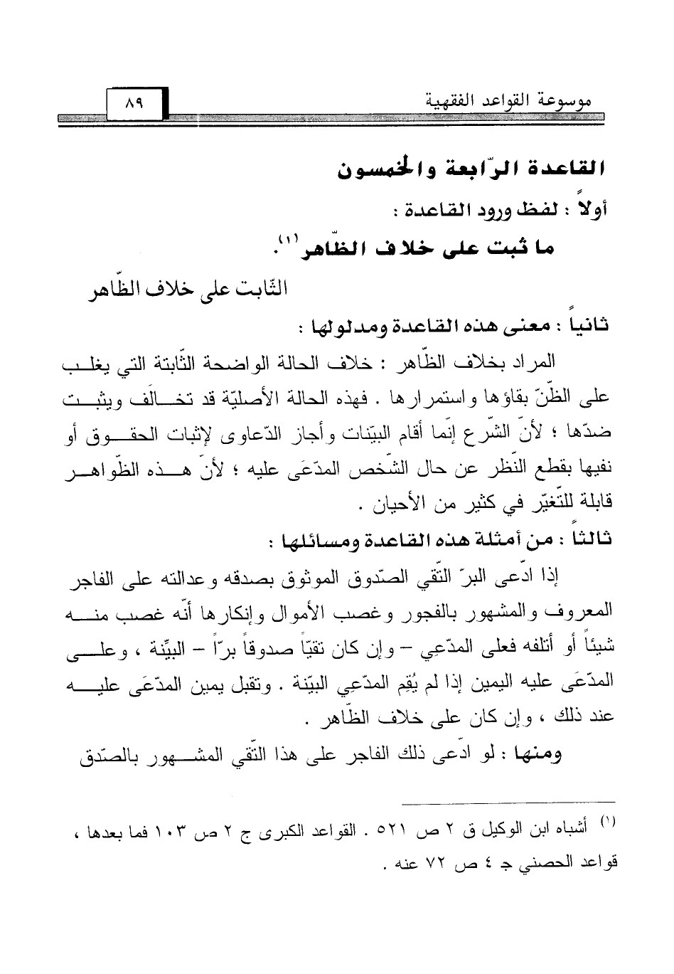 (¬1) أشباه ابن الوكيل ق 2 ص 521. القواعد الكبرى ج 2 ص 103 فما بعدها. قواعد الحصني جـ 4 ص 72 عنه.
