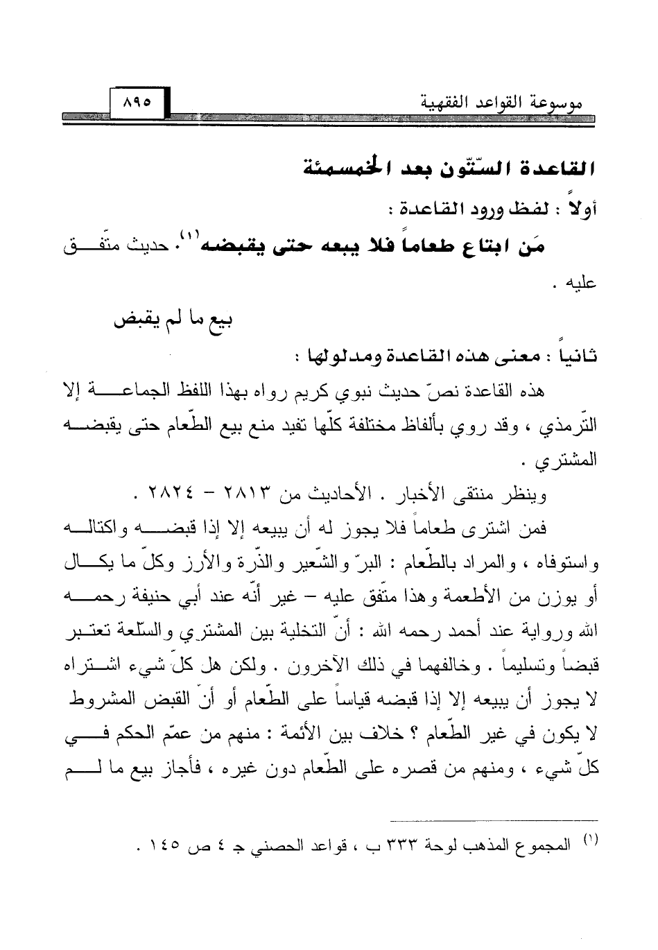 القاعدة السّتّون بعد الخمسمئة [بيع ما لم يقبض]