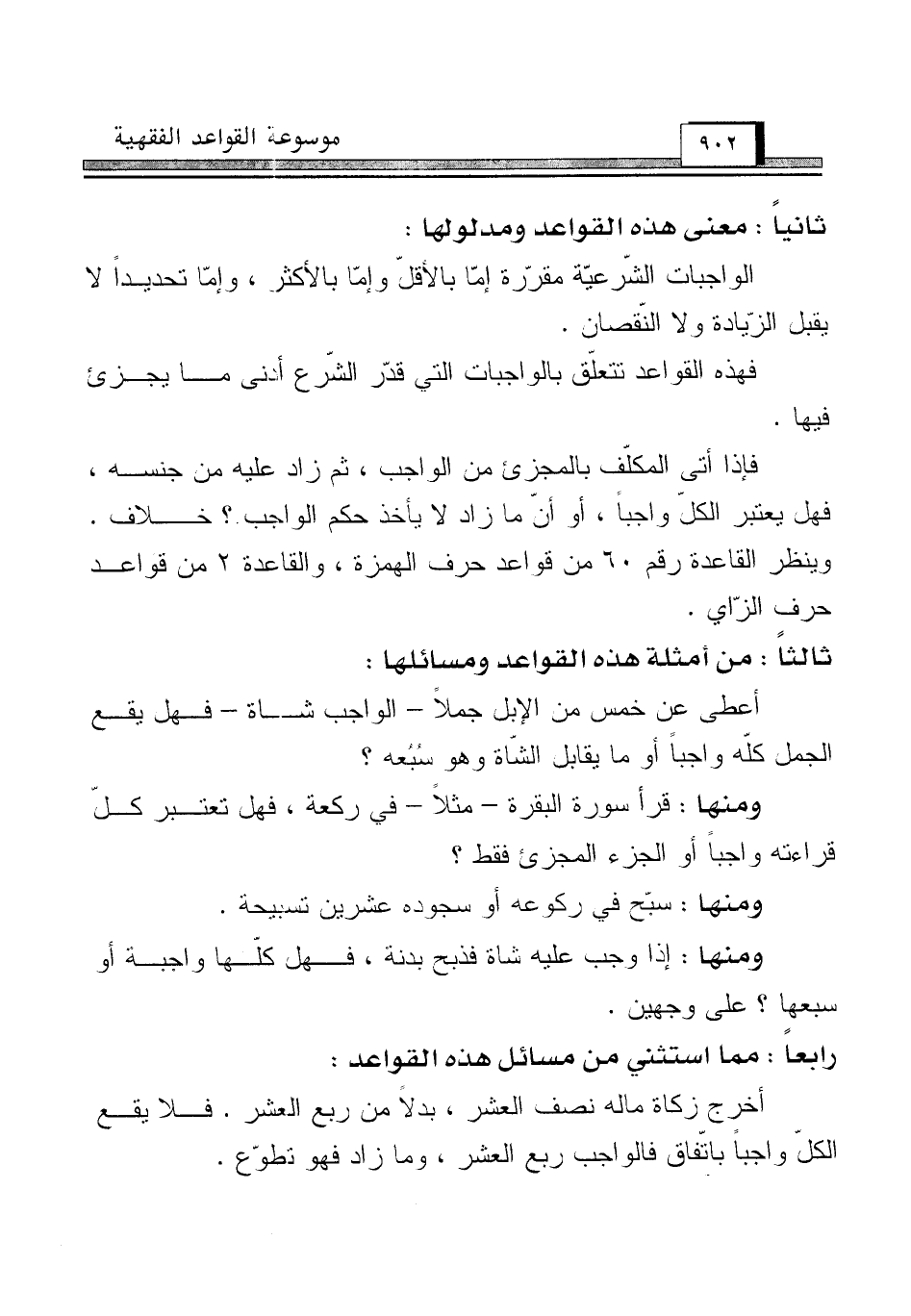 ثالثاً: من أمثلة هذه القواعد ومسائلها: