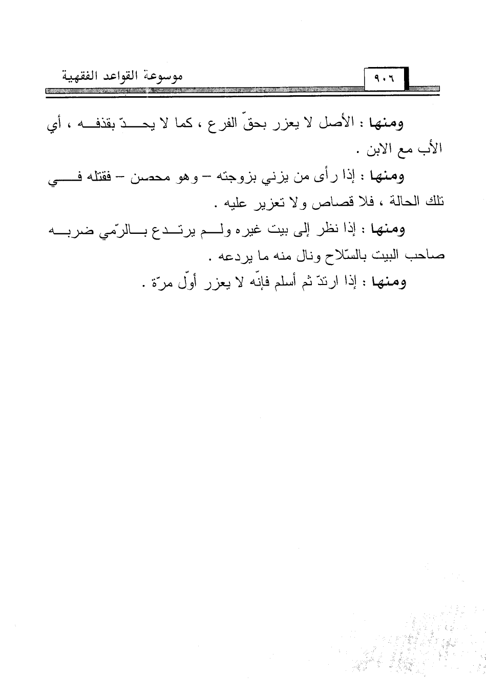 ومنها: الأصل لا يعزر بحقّ الفرع، كما لا يحدّ بقذفه، أي الأب مع الابن.