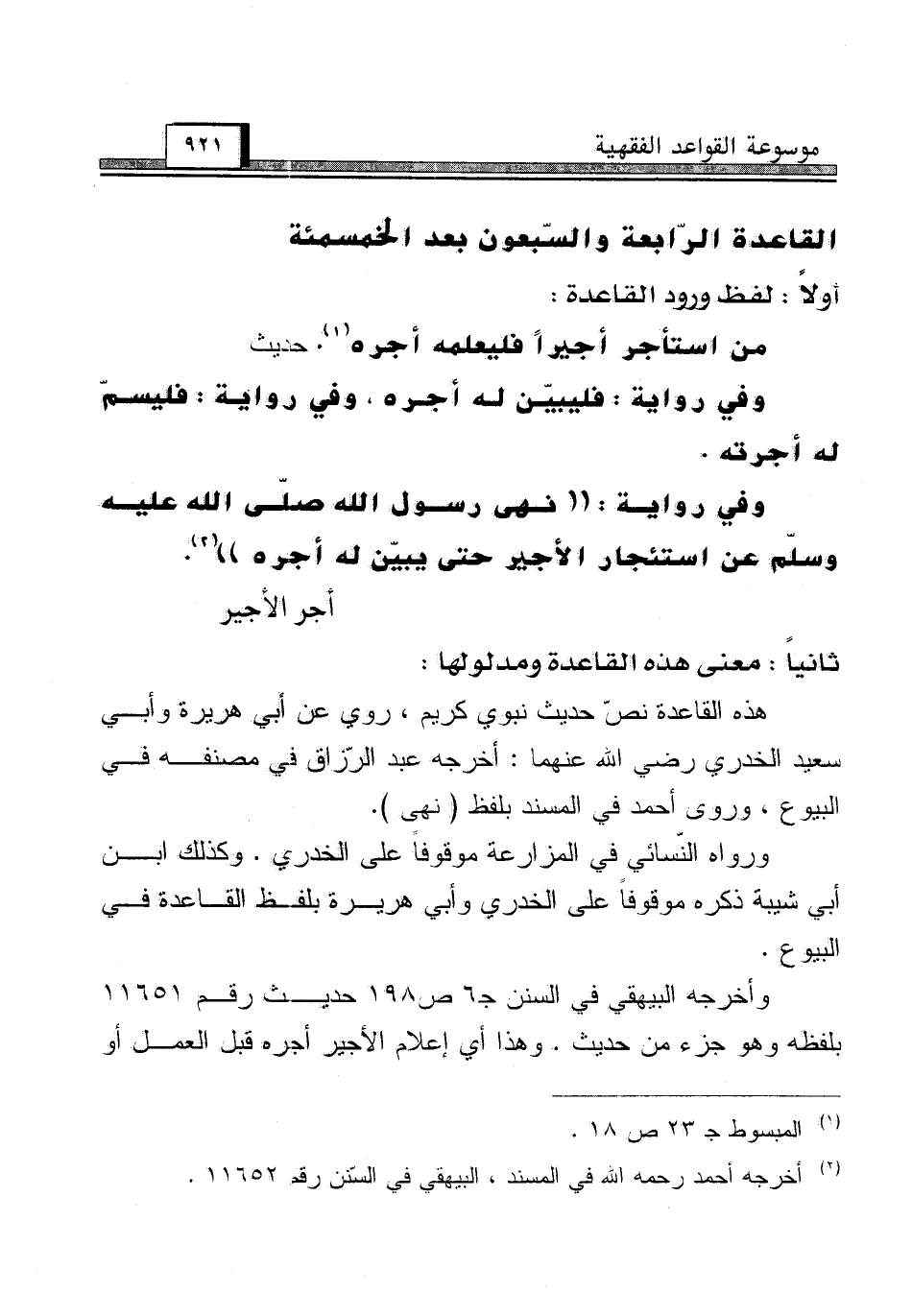 القاعدة الرّابعة والسّبعون بعد الخمسمئة [أجر الأجير]