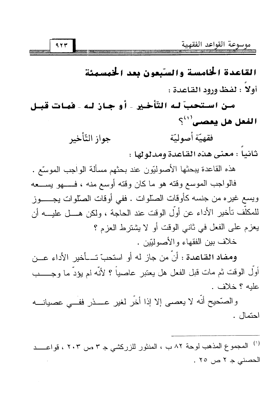 (¬1) المجموع المذهب لوحة 82 ب، المنثور للزركشي جـ 3 ص 203، قواعد الحصني جـ 2 ص 25.