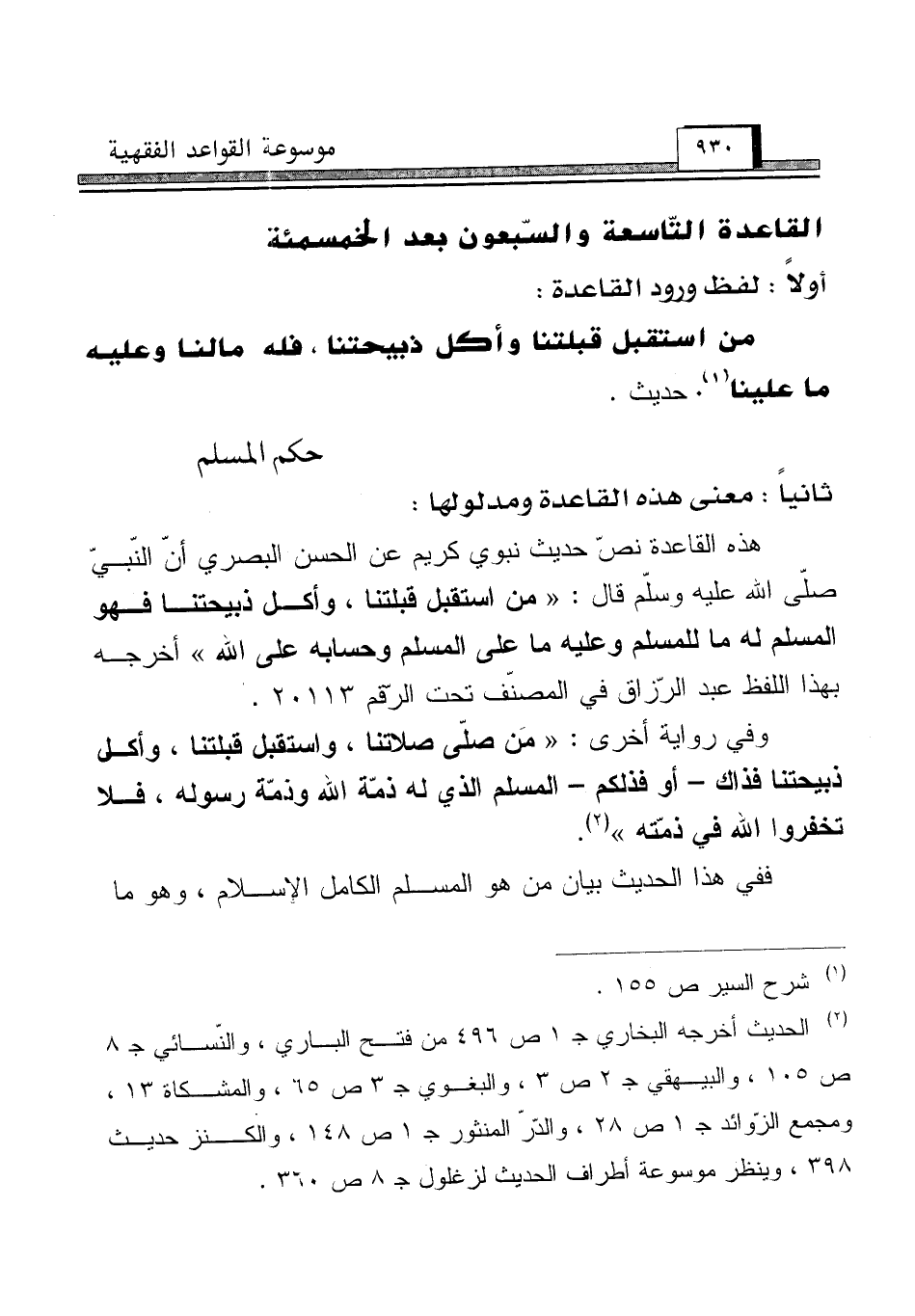 القاعدة التّاسعة والسّبعون بعد الخمسمئة [حكم المسلم]