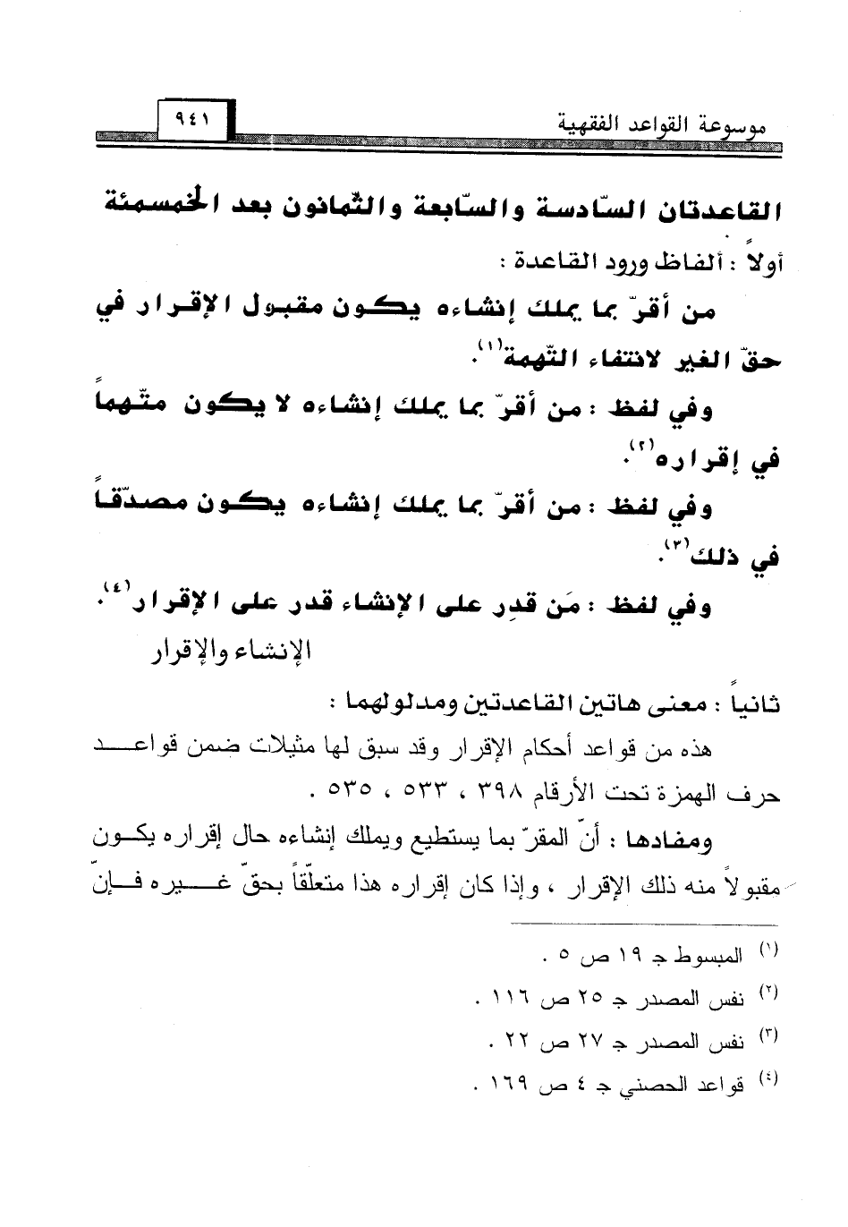 هذه من قواعد أحكام الإقرار وقد سبق لها مثيلات ضمن قواعد حرف الهمزة تحت الأرقام 398، 533، 535.
