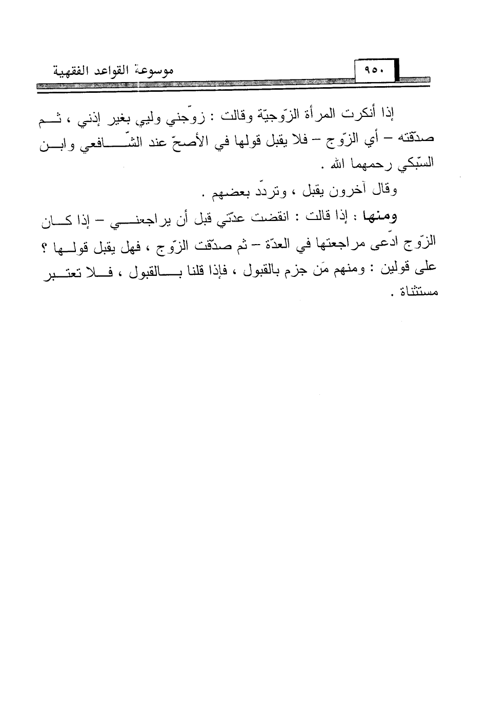 إذا أنكرت المرأة الزّوجيّة وقالت: زوّجني وليي بغير إذني، ثم صدّقته - أي الزّوج - فلا يقبل قولها في الأصحّ عند الشّافعي وابن السّبكي رحمهما الله.