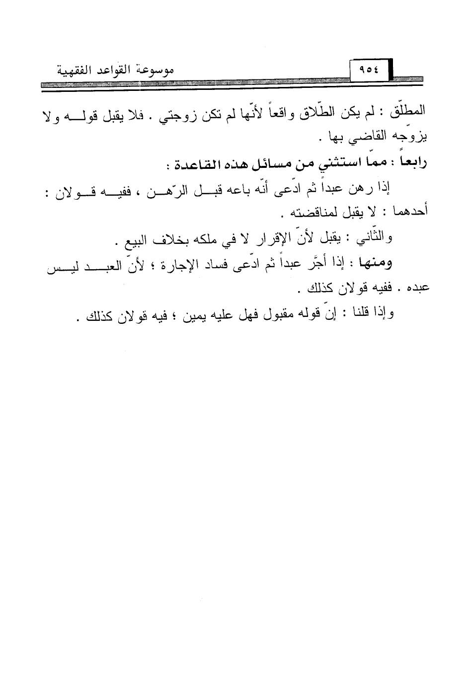 رابعاً: ممّا استثني من مسائل هذه القاعدة: