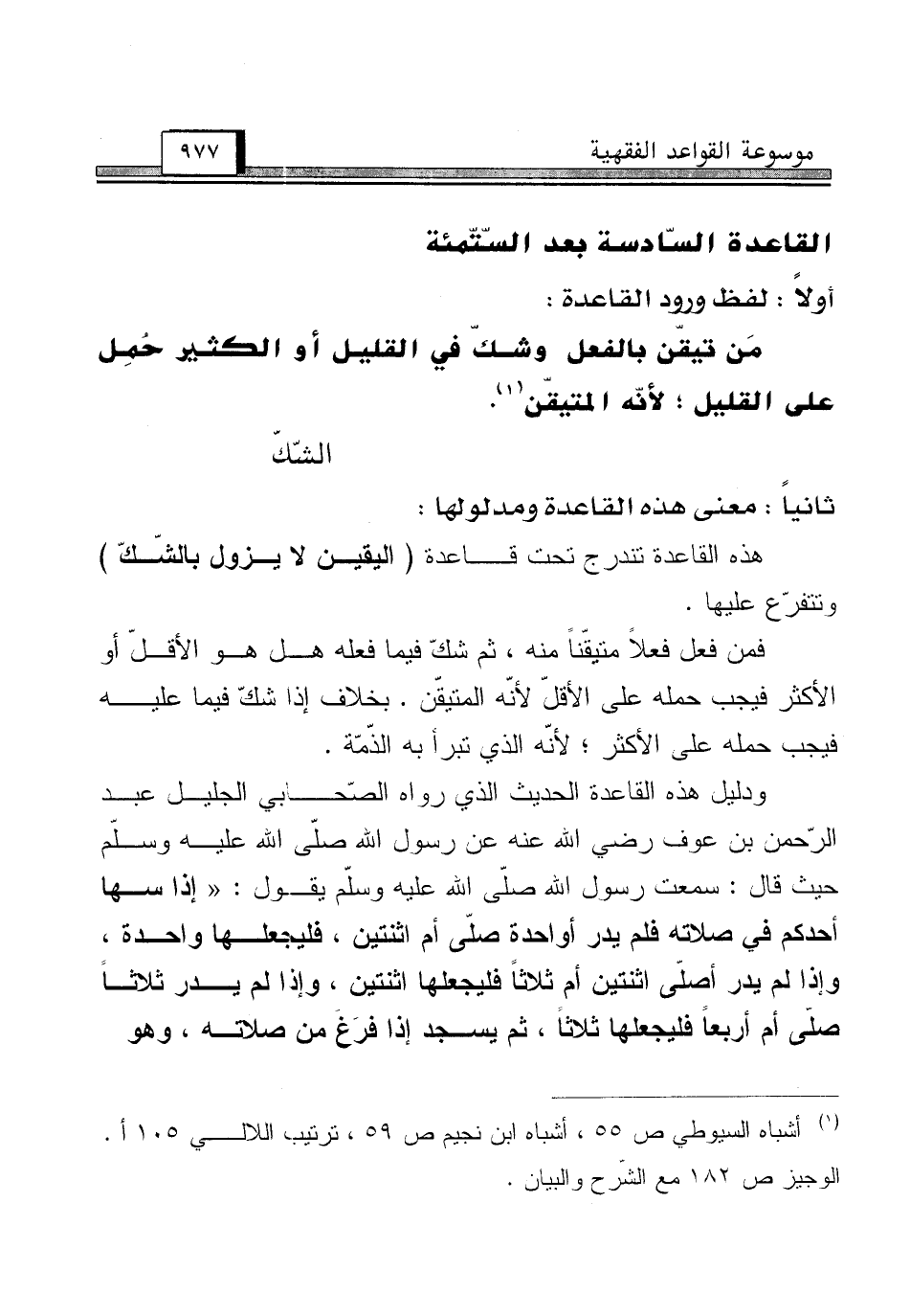 (¬1) أشباه السيوطي ص 55، أشباه ابن نجيم ص 59، ترتيب اللآلي 105 أ. الوجيز ص 182 مع الشّرح والبيان.