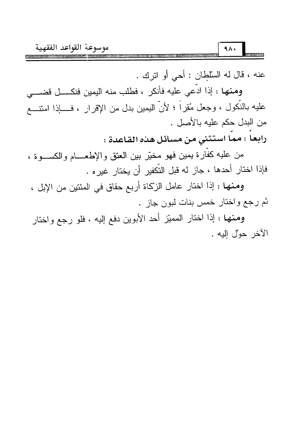 رابعاً: ممّا استثني من مسائل هذه القاعدة: