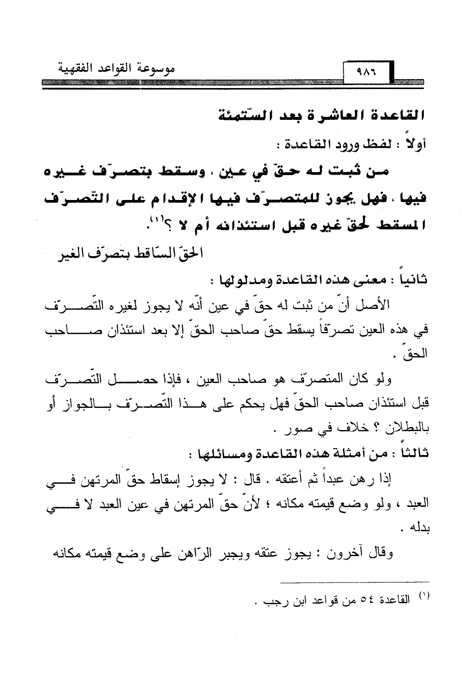 (¬1) القاعدة 54 من قواعد ابن رجب.