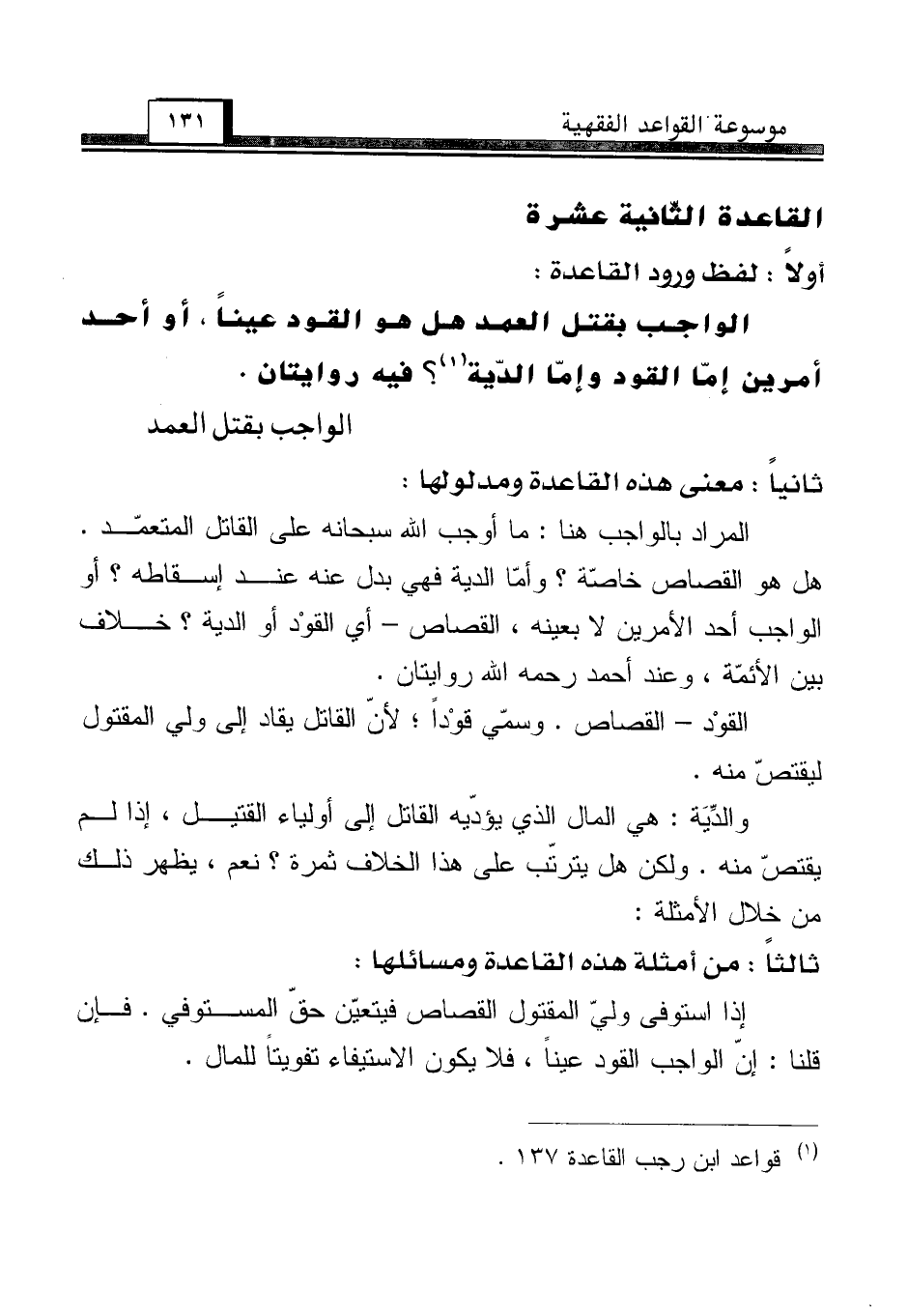 (¬1) قواعد ابن رجب القاعدة 137.