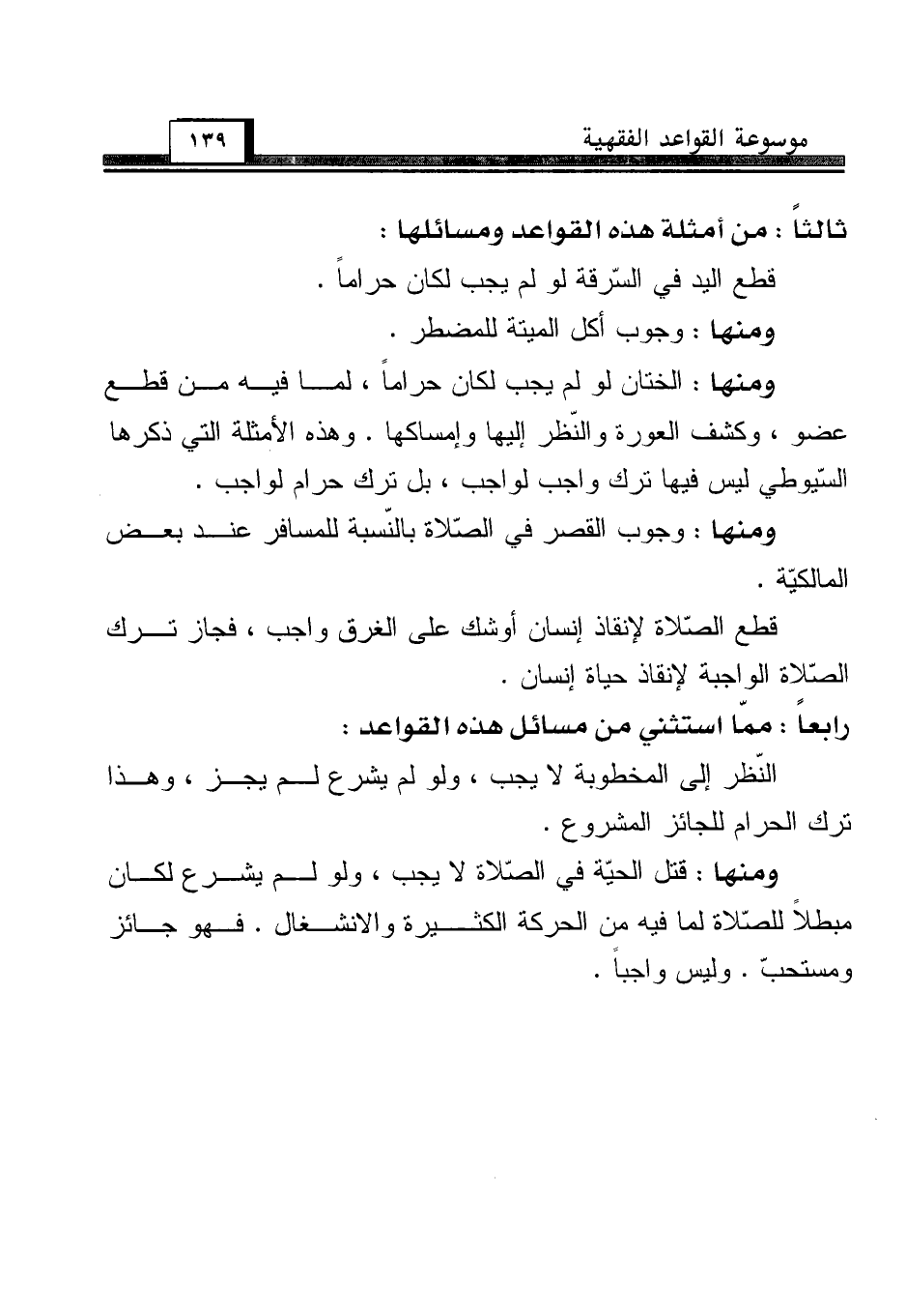 ثالثاً: من أمثلة هذه القواعد ومسائلها: