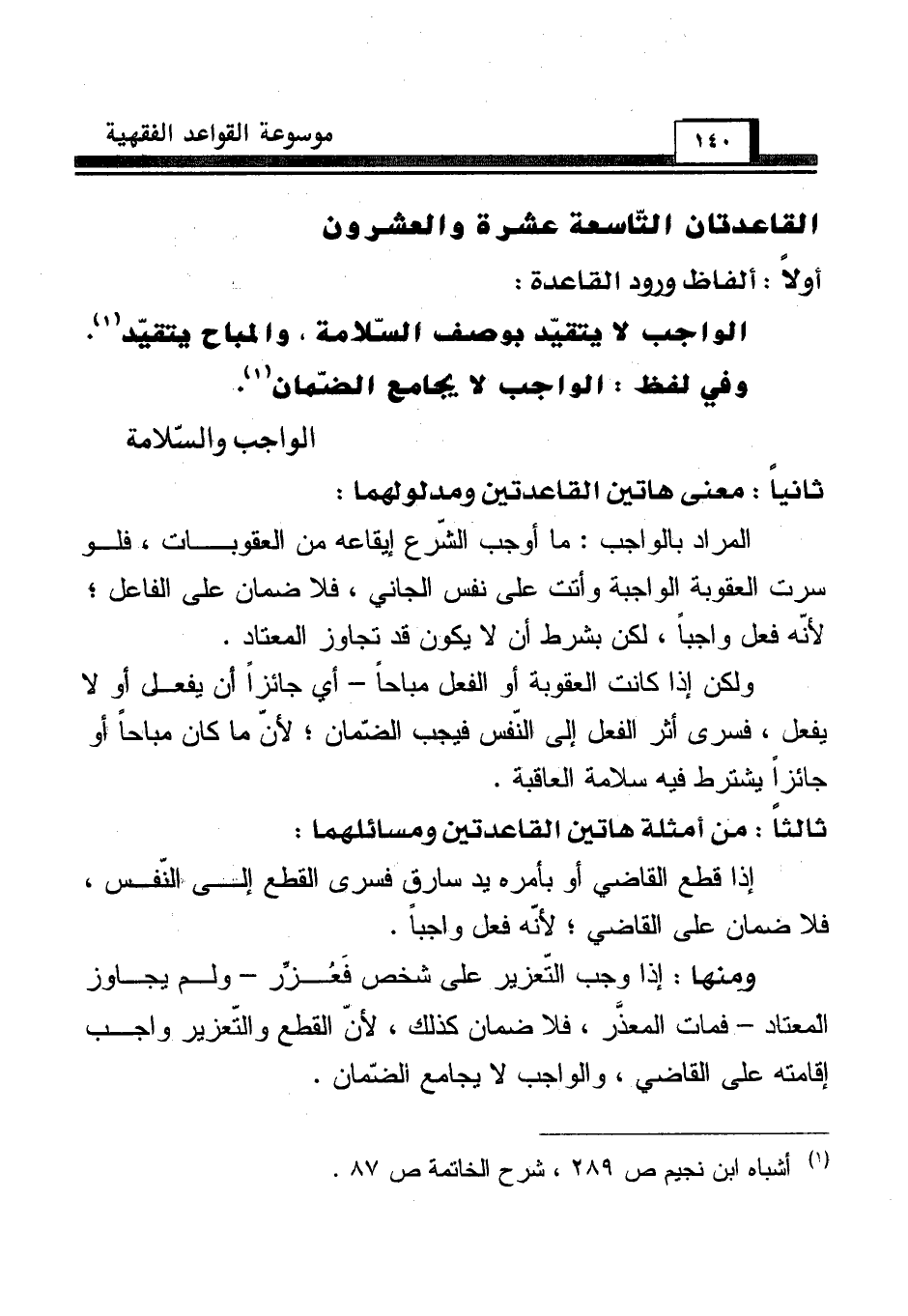 القاعدتان التّاسعة عشرة والعشرون [الواجب والسّلامة]