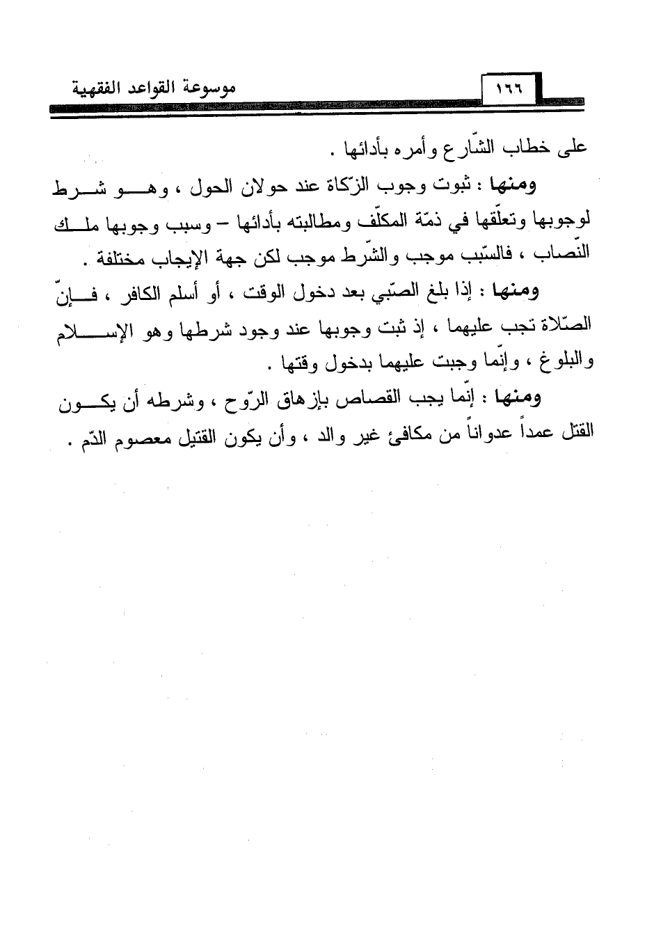 ومنها: ثبوت وجوب الزّكاة عند حولان الحول، وهو شرط لوجوبها وتعلّقها في ذمّة المكلّف ومطالبته بأدائها - وسبب وجوبها ملك النّصاب، فالسّبب موجب والشّرط موجب لكن جهة الإيجاب مختلفة.