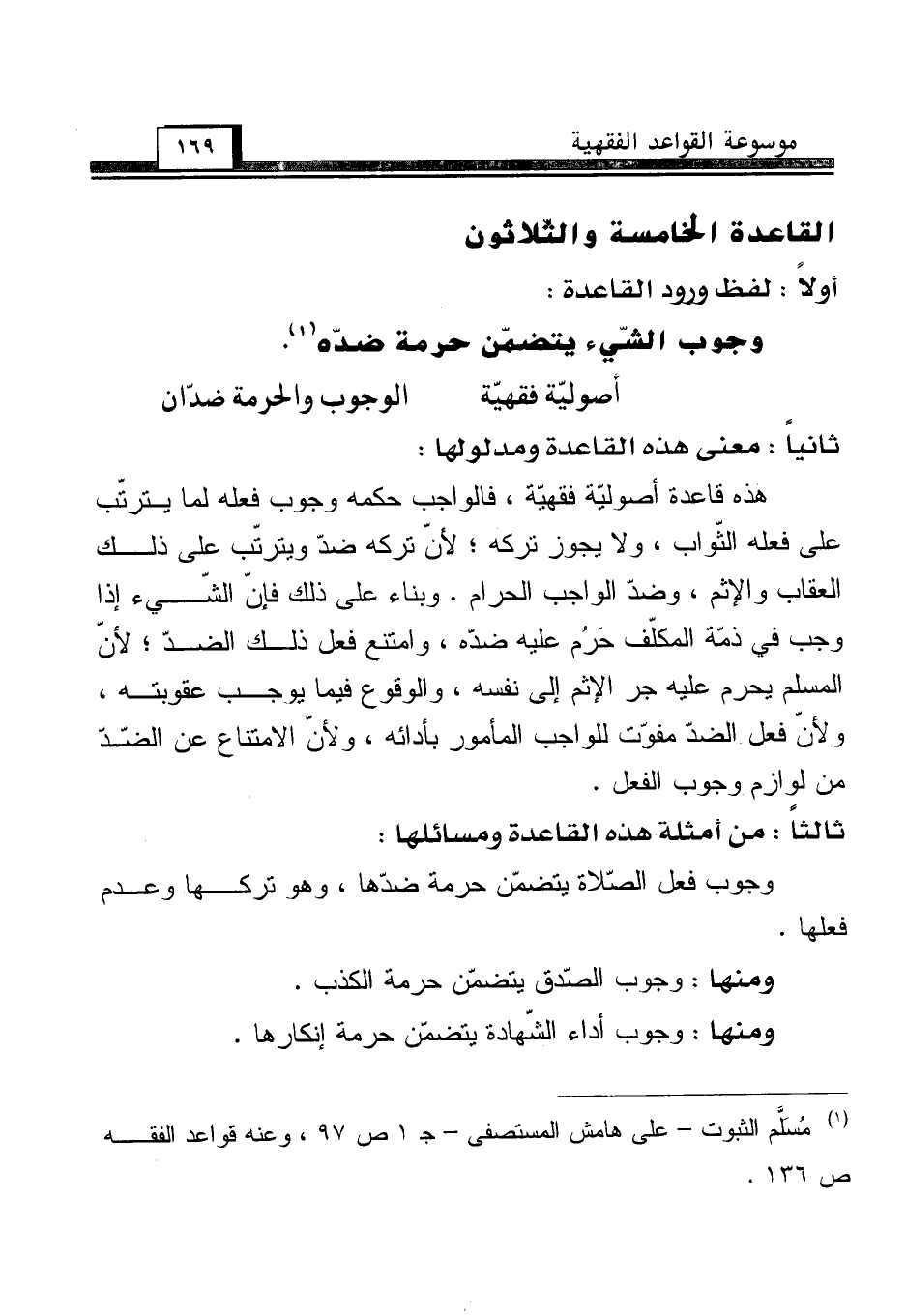 (¬1) مُسَلَّم الثبوت - على هامش المستصفى - جـ 1 ص 97، وعنه قواعد الفقه ص 136.