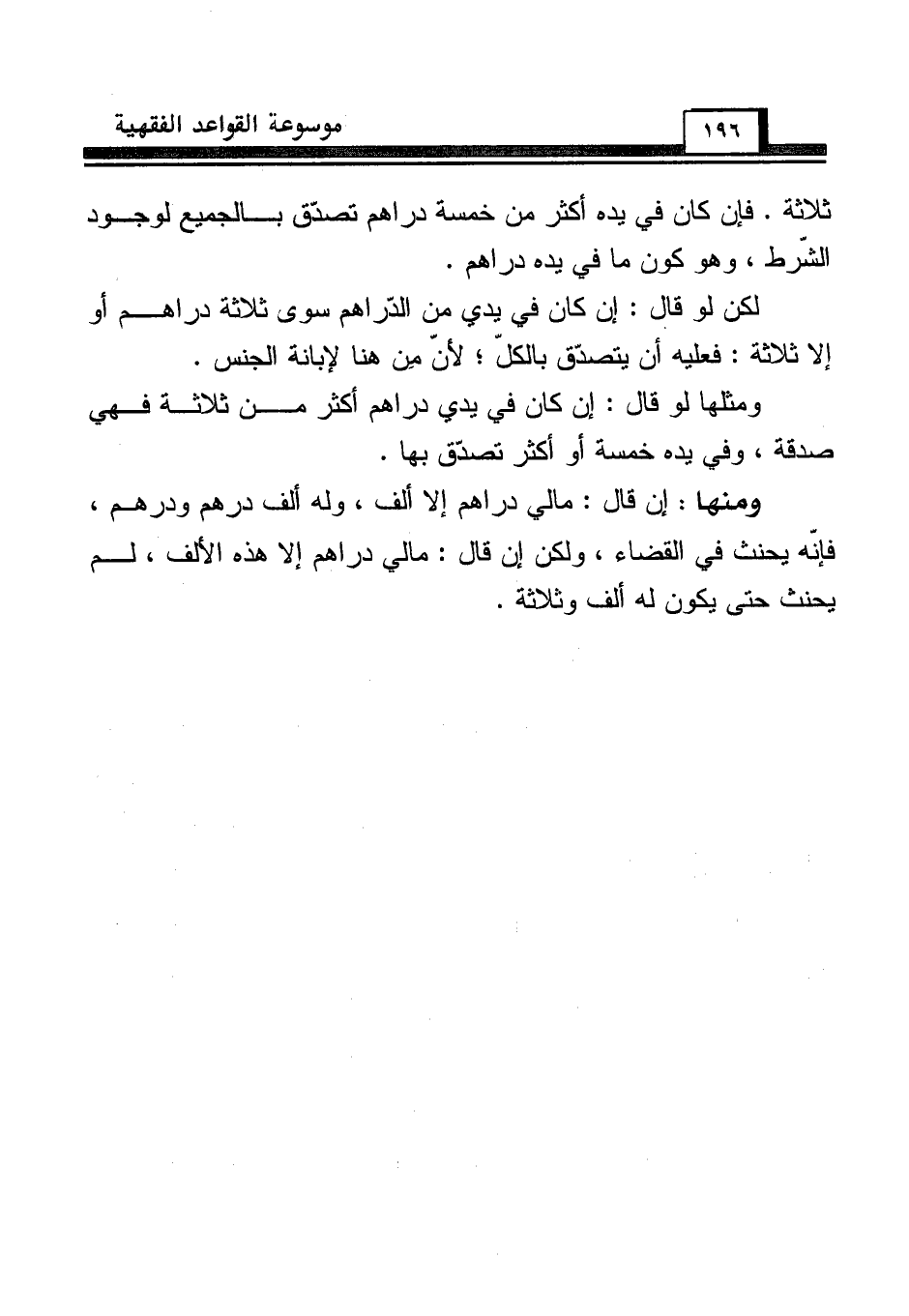 ومنها: إن قال: مالي دراهم إلا ألف، وله أَلف درهم ودرهم، فإنّه يحنث في القضاء، ولكن إن قال: مالي دراهم إلا هذه الألف، لم يحنث حتى يكون له ألف وثلاثة.