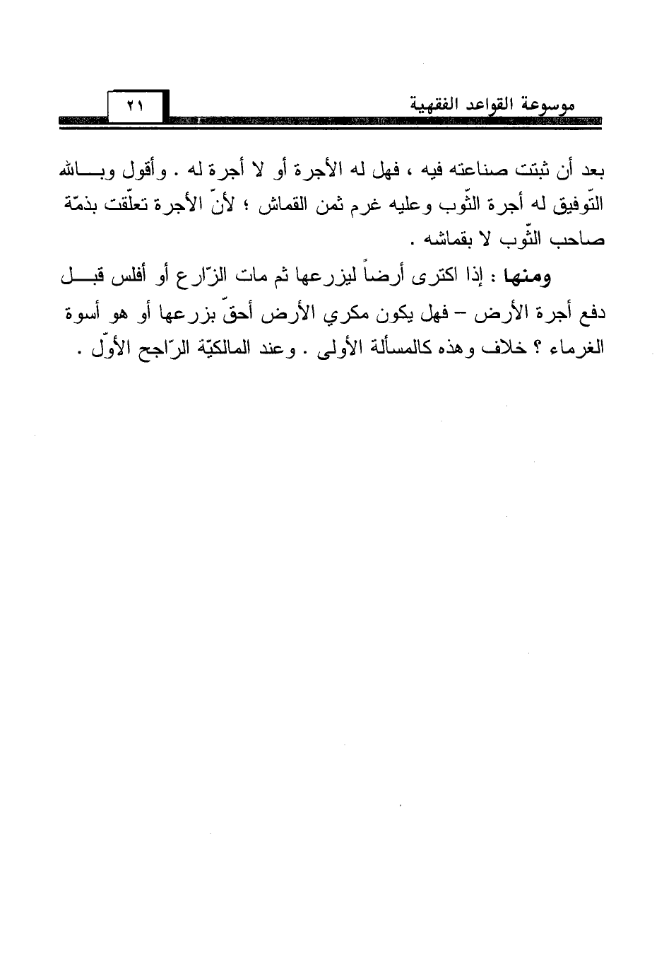 ومنها: إذا اكترى أرضاً ليزرعها ثم مات الزّارع أو أفلس قبل دفع أجرة الأرض - فهل يكون مكري الأرض أحقّ بزرعها أو هو أسوة الغرماء؟ خلاف وهذه كالمسألة الأولى. وعند المالكيّة الرّاجح الأوّل.