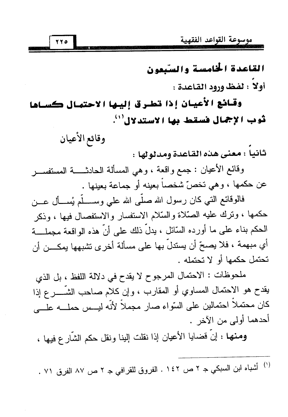 (¬1) أشباه ابن السبكي جـ 2 ص 142. الفروق للقرافي جـ 2 ص 87 الفرق 71.