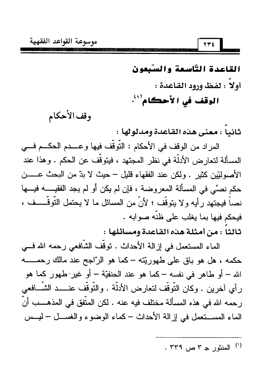 القاعدة التّاسعة والسّبعون [وقف الأحكام]