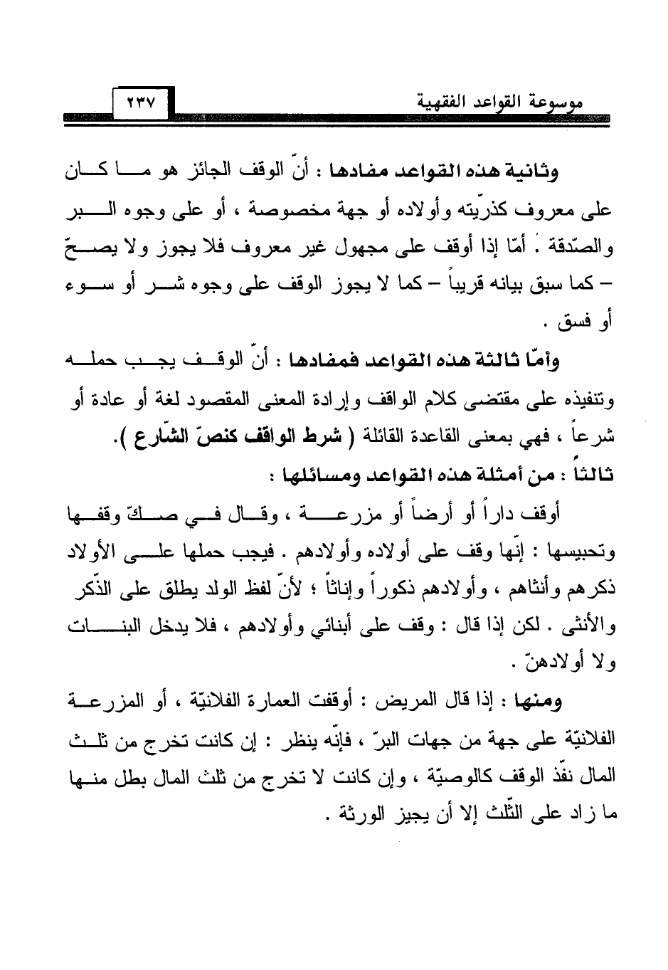 وثانية هذه القواعد مفادها: أنّ الوقف الجائز هو ما كان على معروف كذرّيته وأولاده أو جهة مخصوصة، أو على وجوه البر والصّدقة. أمّا إذا أوقف على مجهول غير معروف فلا يجوز ولا يصحّ - كما سبق بيانه قريباً - كما لا يجوز الوقف على وجوه شر أو سوء أو فسق.