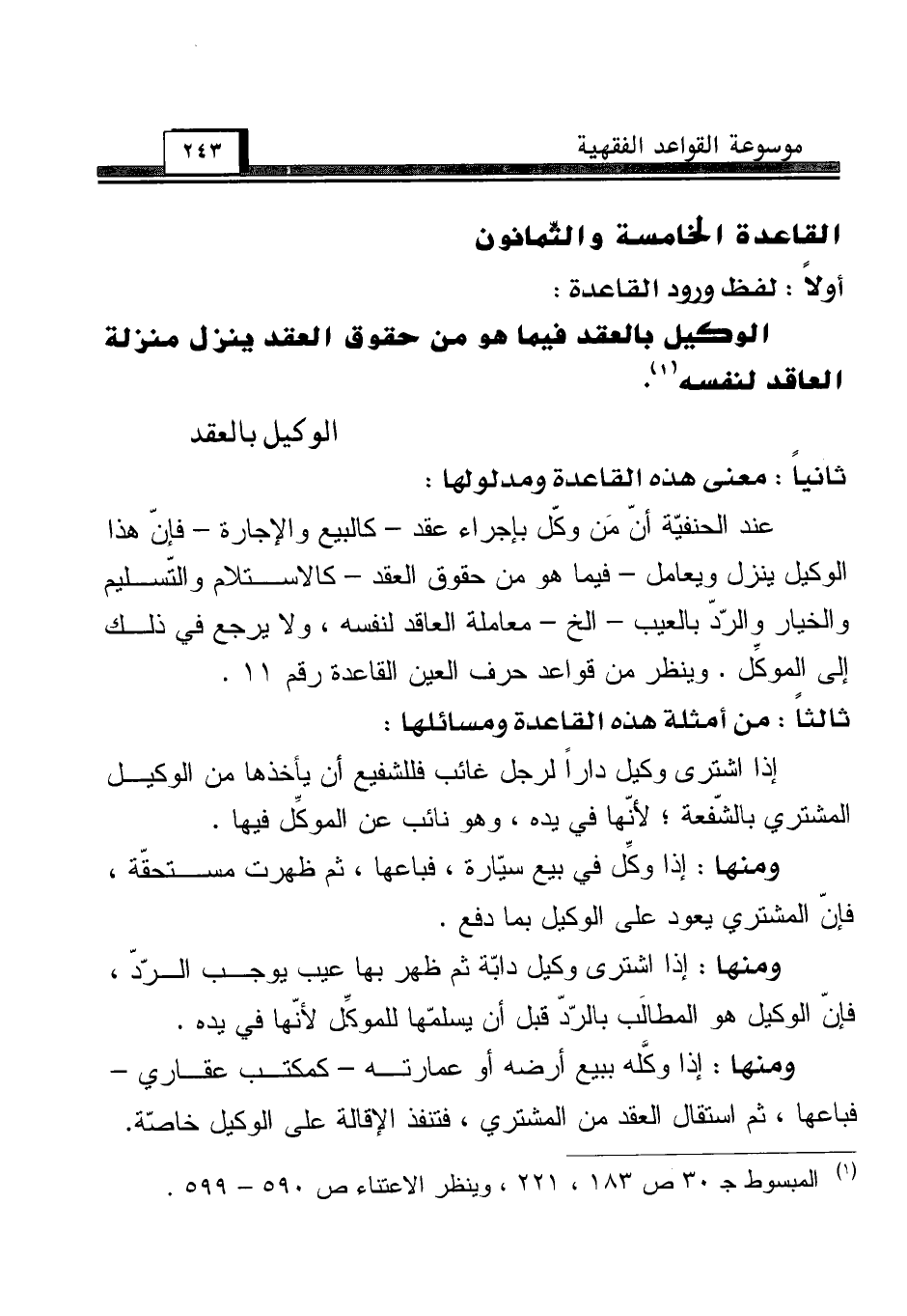 القاعدة الخامسة والثّمانون [الوكيل بالعقد]
