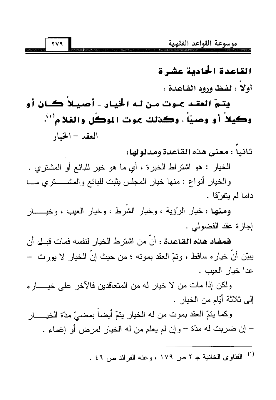 القاعدة الحادية عشرة [العقد - الخيار]