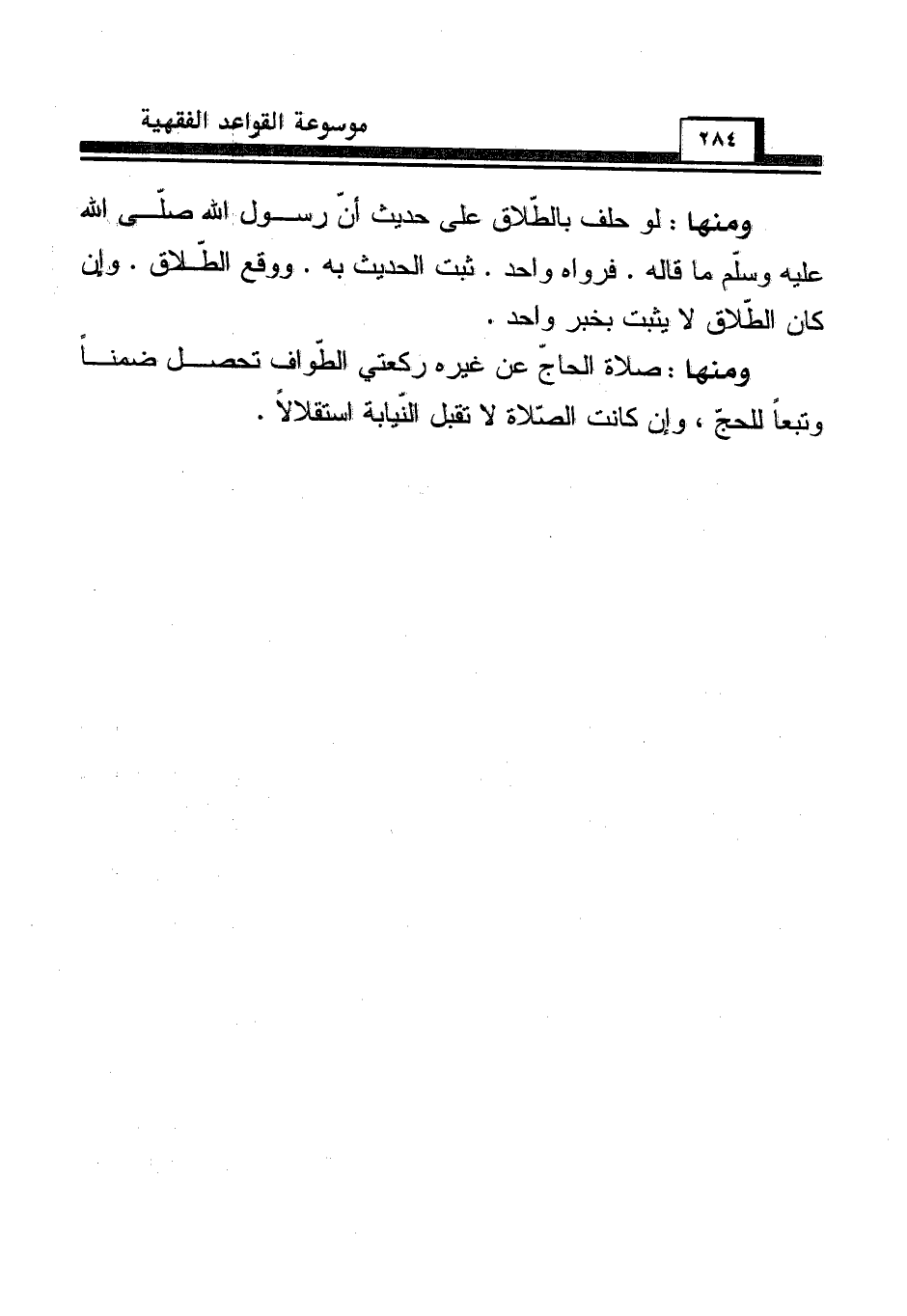 ومنها: لو حلف بالطّلاق على حديث أنّ رسول الله صلّى الله عليه وسلّم ما قاله. فرواه واحد. ثبت الحديث به. ووقع الطّلاق. وإن كان الطّلاق لا يثبت بخبر واحد.