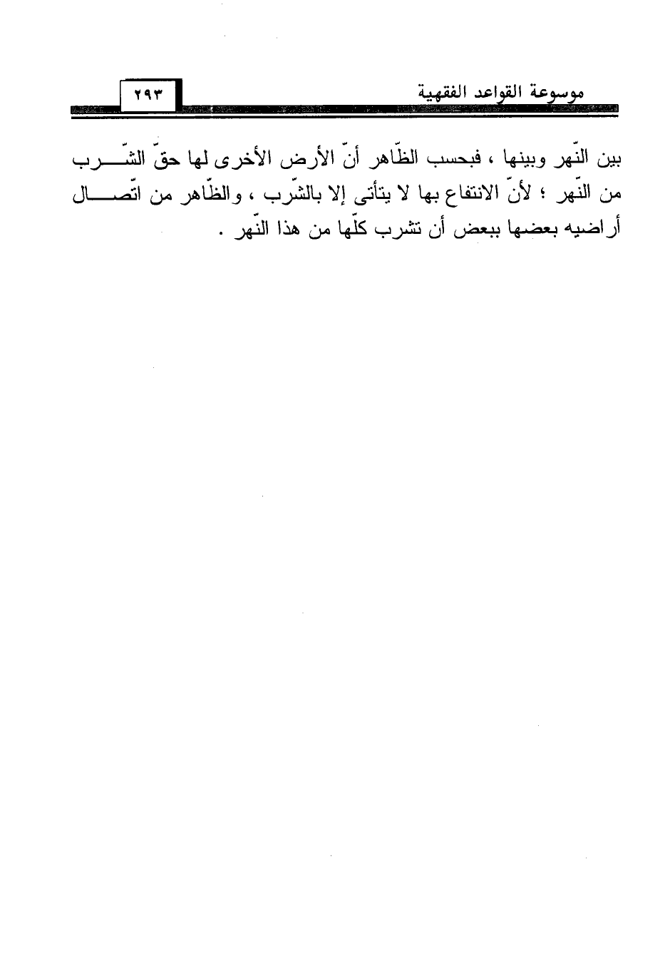 بين النّهر وبينها، فبحسب الظّاهر أنّ الأرض الأخرى لها حقّ الشّرب من النّهر؛ لأنّ الانتفاع بها لا يتأتى إلا بالشّرب، والظّاهر من اتّصال أراضيه بعضها ببعض أن تشرب كلّها من هذا النّهر.