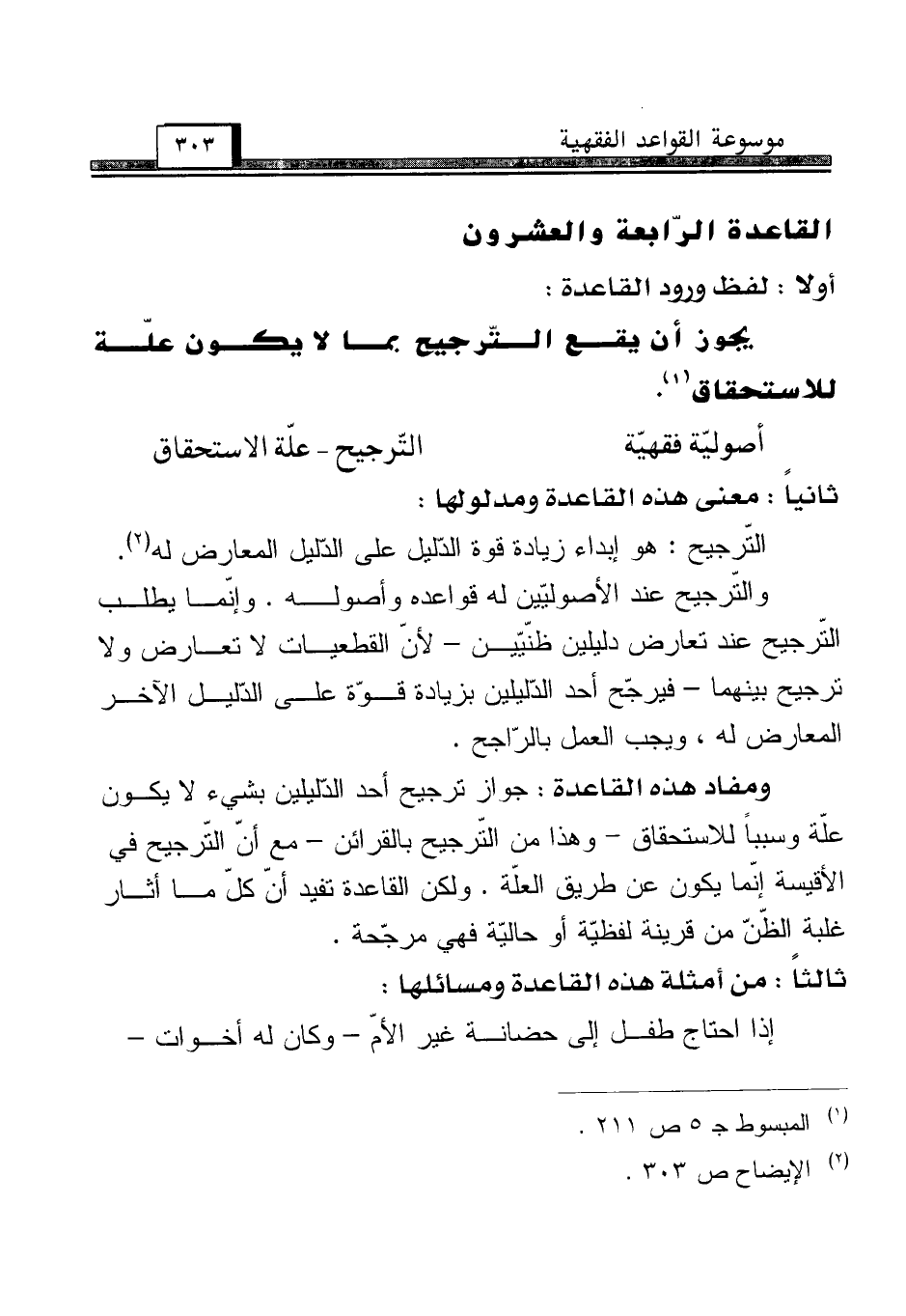 القاعدة الرّابعة والعشرون [التّرجيح - علّة الاستحقاق]