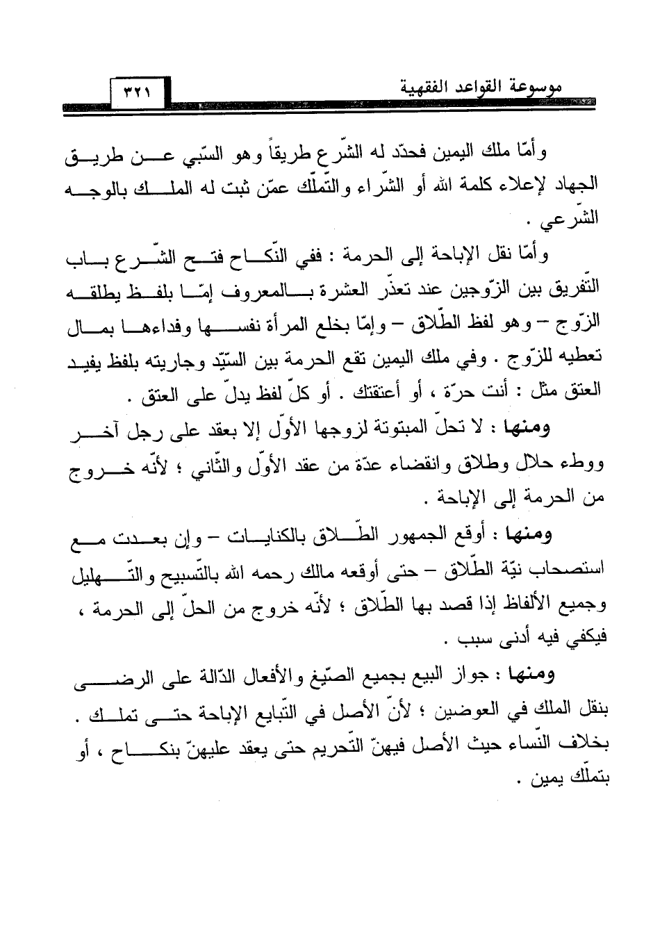 ومنها: جواز البيع بجميع الصّيغ والأفعال الدّالة على الرضى بنقل الملك في العوضين؛ لأنّ الأصل في التّبايع الإباحة حتى تملك. بخلاف النّساء حيث الأصل فيهنّ التّحريم حتى يعقد عليهنّ بنكاح، أو بتملّك يمين.