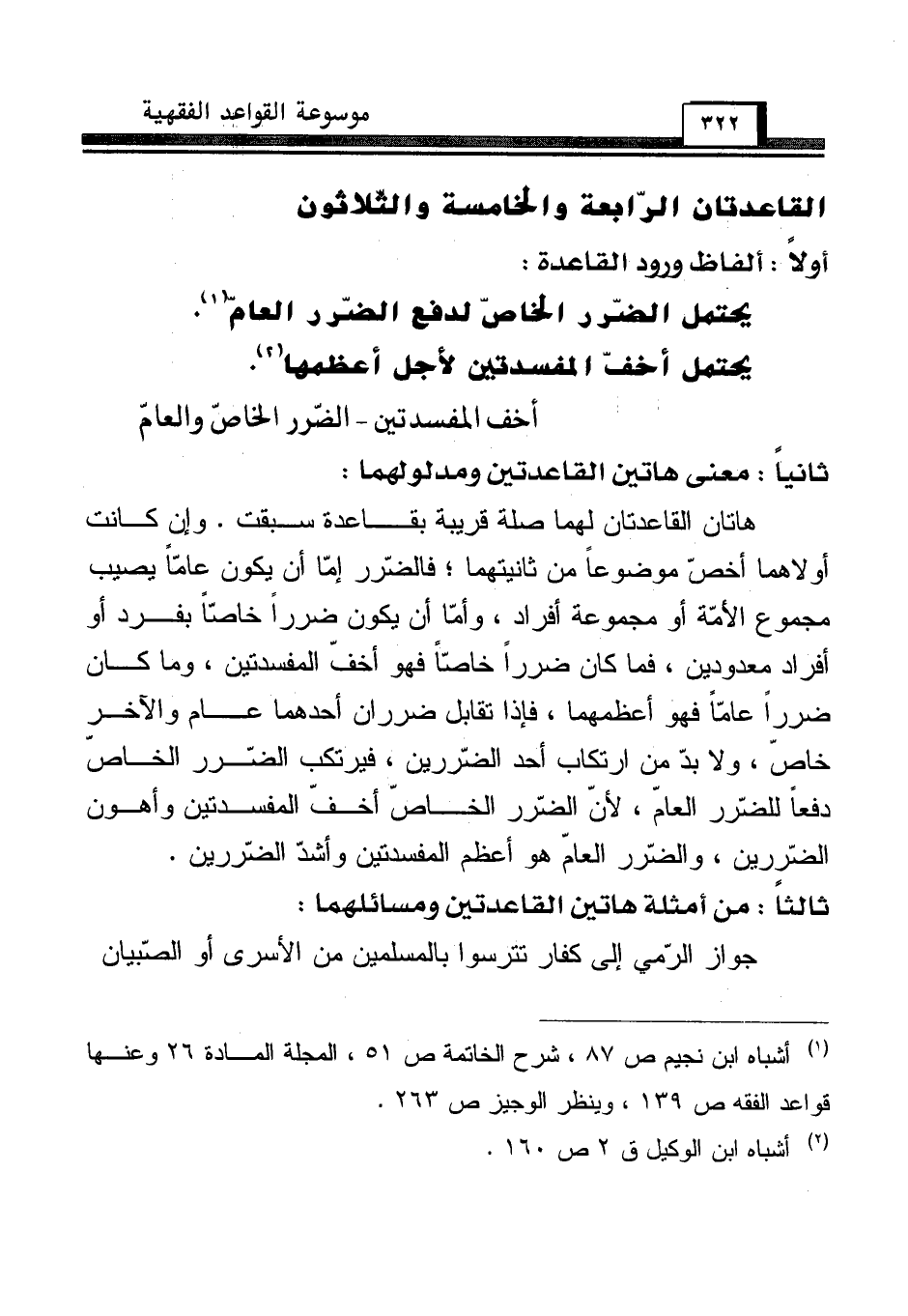 (¬1) أشباه ابن نجيم ص 87، شرح الخاتمة ص 51، المجلة المادة 26 وعنها قواعد الفقه ص 139، وينظر الوجيز ص 263.