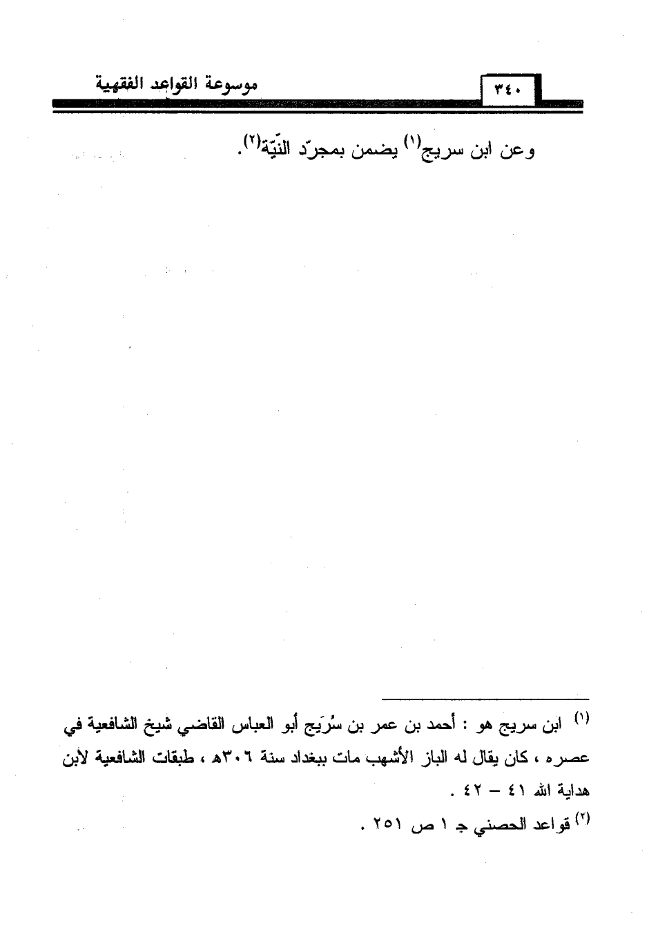(¬1) ابن سريج هو: أحمد بن عمر بن سُرَيج أبو العباس القاضي شيخ الشافعية في عصره، كان يقال له الباز الأشهب مات ببغداد سنة 306 هـ، طبقات الشافعية لابن هداية الله 41 - 42.