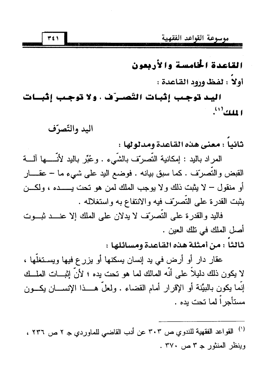 (¬1) القواعد الفقهية للندوي ص 303 عن أدب القاضي للماوردي جـ 2 ص 236، وينظر المنثور جـ 3 ص 370.