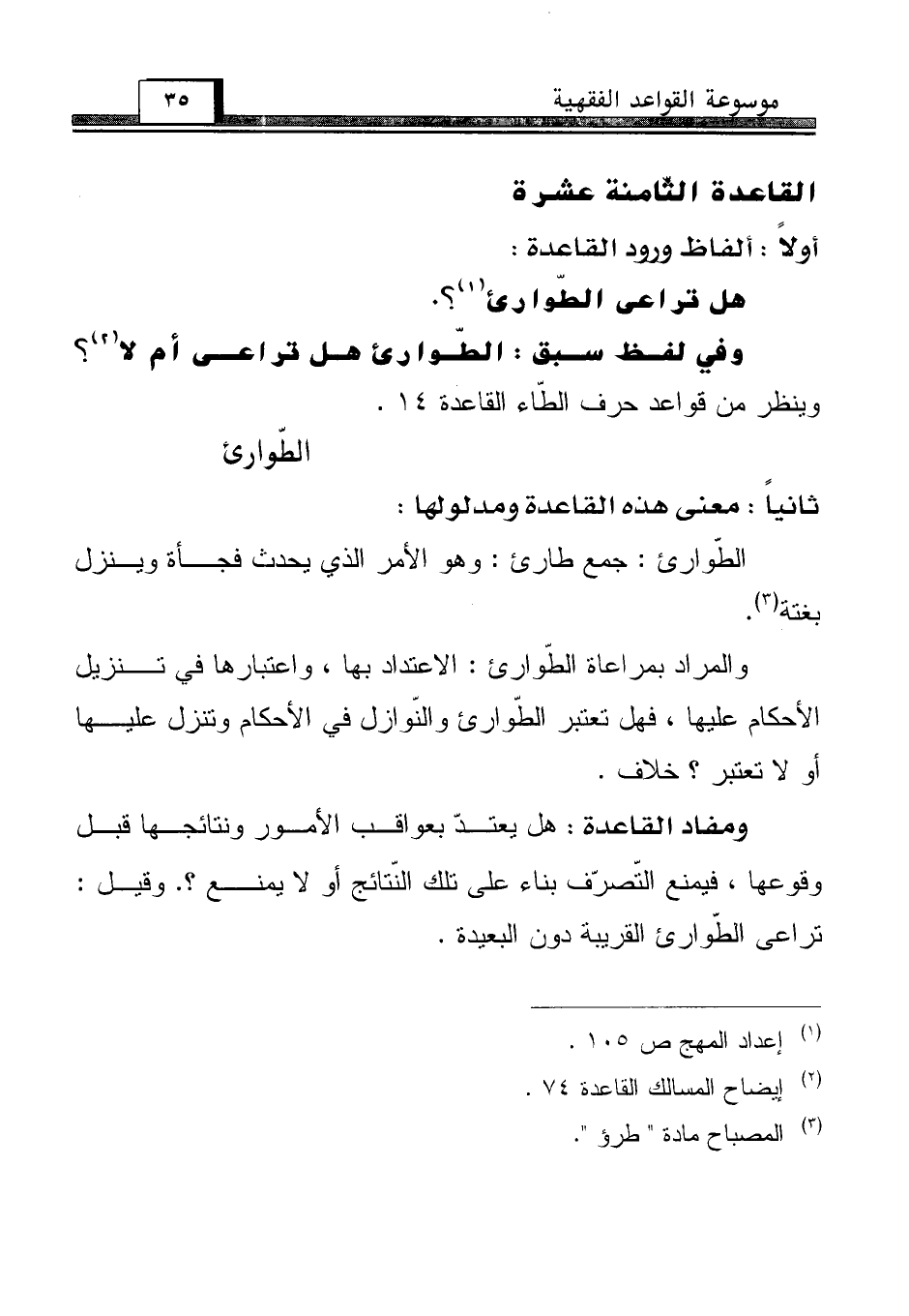 وفي لفظ سبق: الطّوارئ هل تراعى أم لا (¬2)؟ وينظر من قواعد حرف الطّاء القاعدة 14.