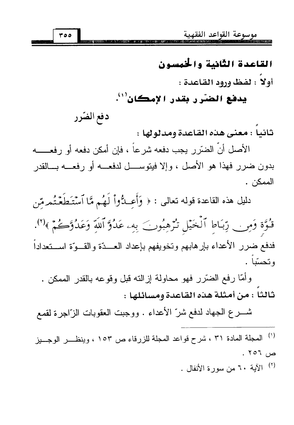 (¬1) المجلة المادة 31، شرح قواعد المجلة للزرقاء ص 153، وينظر الوجيز ص 256.
