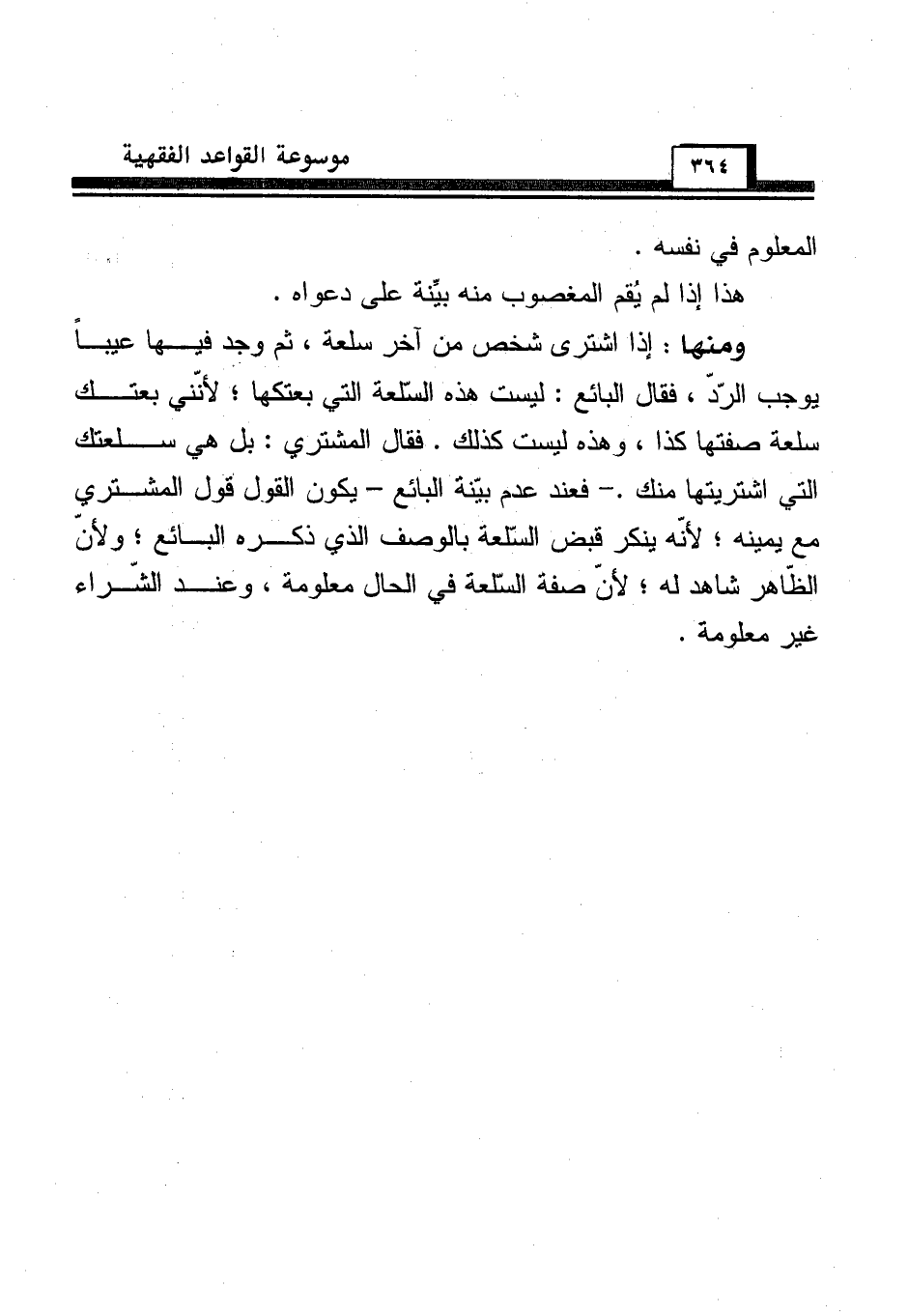 ومنها: إذا اشترى شخص من آخر سلعة، ثم وجد فيها عيباً يوجب الرّدّ، فقال البائع: ليست هذه السّلعة التي بعتكها؛ لأنّني بعتك سلعة صفتها كذا، وهذه ليست كذلك. فقال المشتري: بل هي سلعتك التي اشتريتها منك. - فعند عدم بيّنة البائع - يكون القول قول المشتري مع يمينه؛ لأنّه ينكر قبض السّلعة بالوصف الذي ذكره البائع؛ ولأنّ الظّاهر شاهد له؛ لأنّ صفة السّلعة في الحال معلومة، وعند الشّراء غير معلومة.