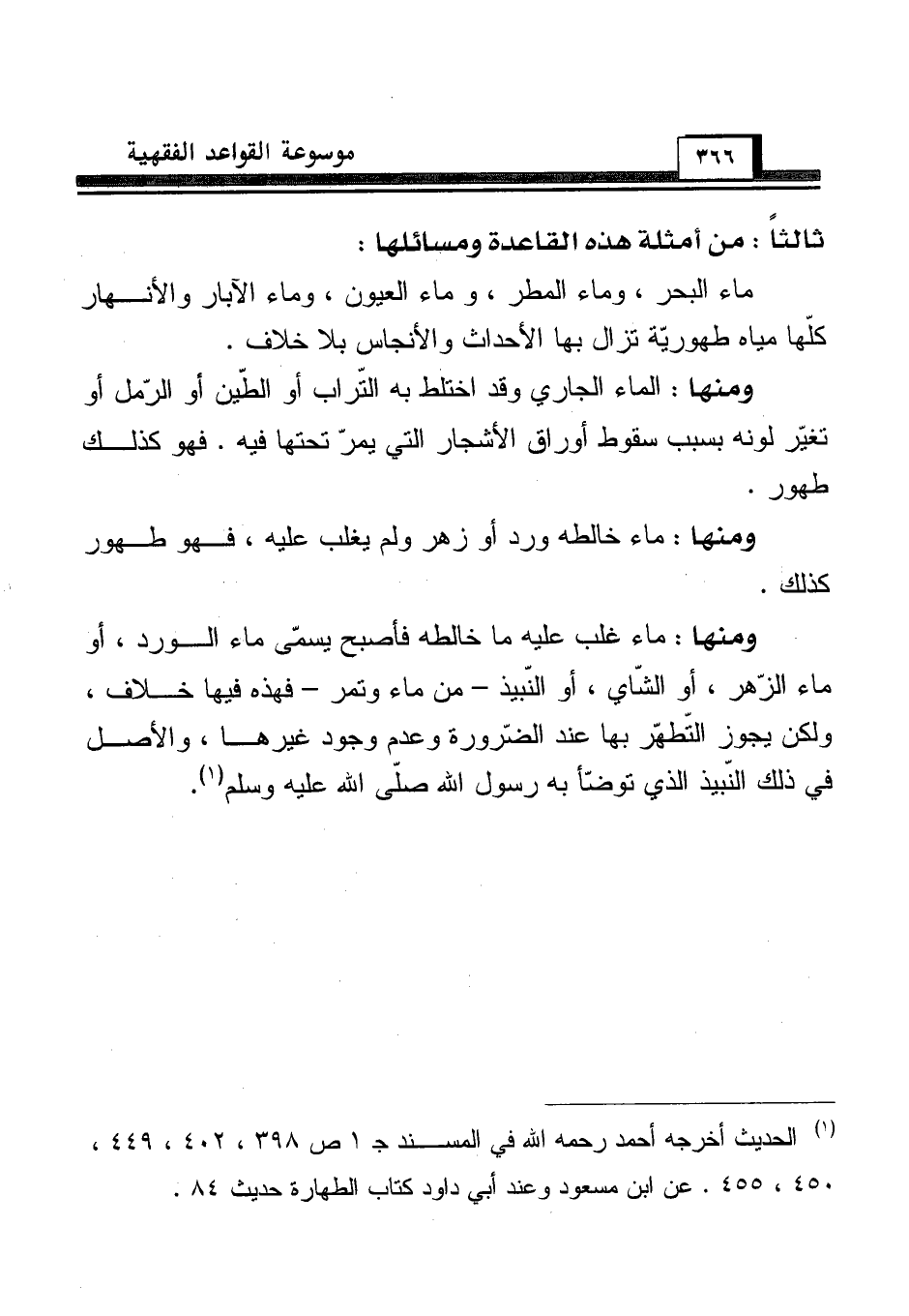 (¬1) الحديث أخرجه أحمد رحمه الله في المسند جـ 1 ص 398، 402، 449، 450، 455. عن ابن مسعود وعند أبي داود كتاب الطهارة حديث 84.