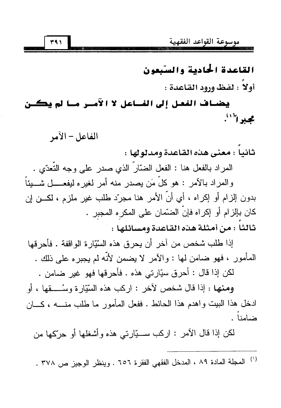 (¬1) المجلة المادة 89، المدخل الفقهي الفقرة 656. وينظر الوجيز ص 378.