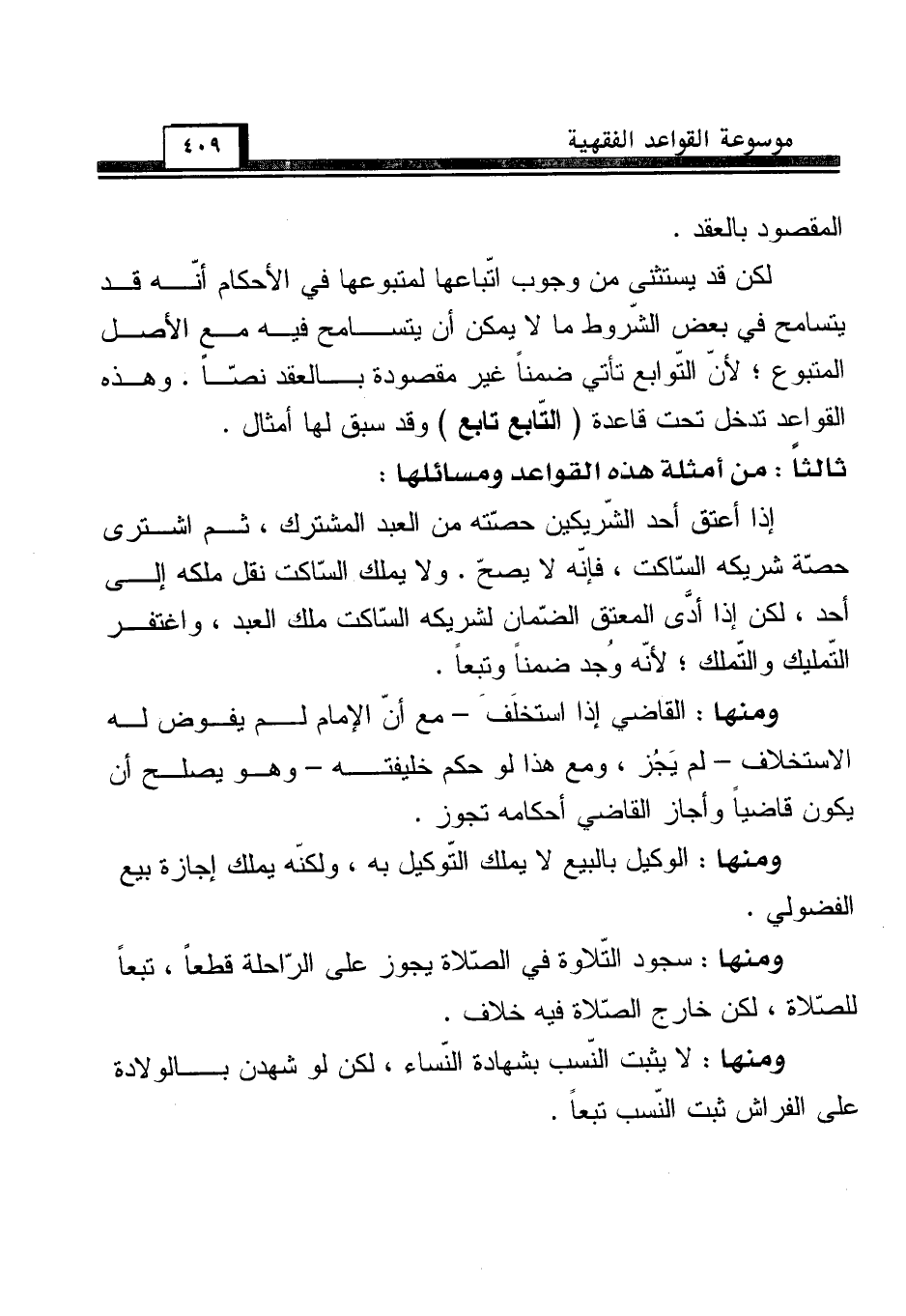 ثالثاً: من أمثلة هذه القواعد ومسائلها: