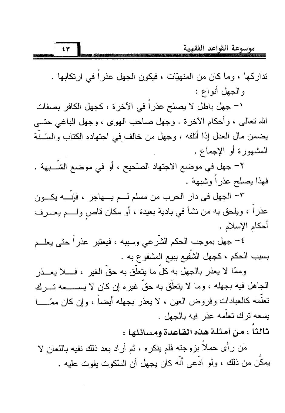 3 - الجهل في دار الحرب من مسلم لم يهاجر، فإنّه يكون عذراً، ويلحق به من نشأ في بادية بعيدة، أو مكان قاصٍ ولم يعرف أحكام الإسلام.