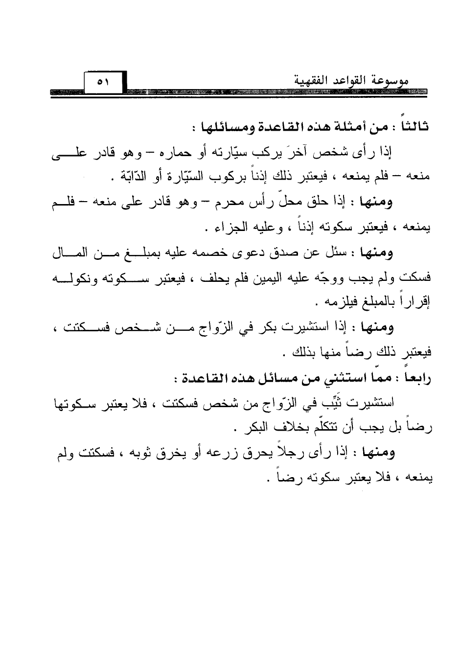 ثالثاً: من أمثلة هذه القاعدة ومسائلها: