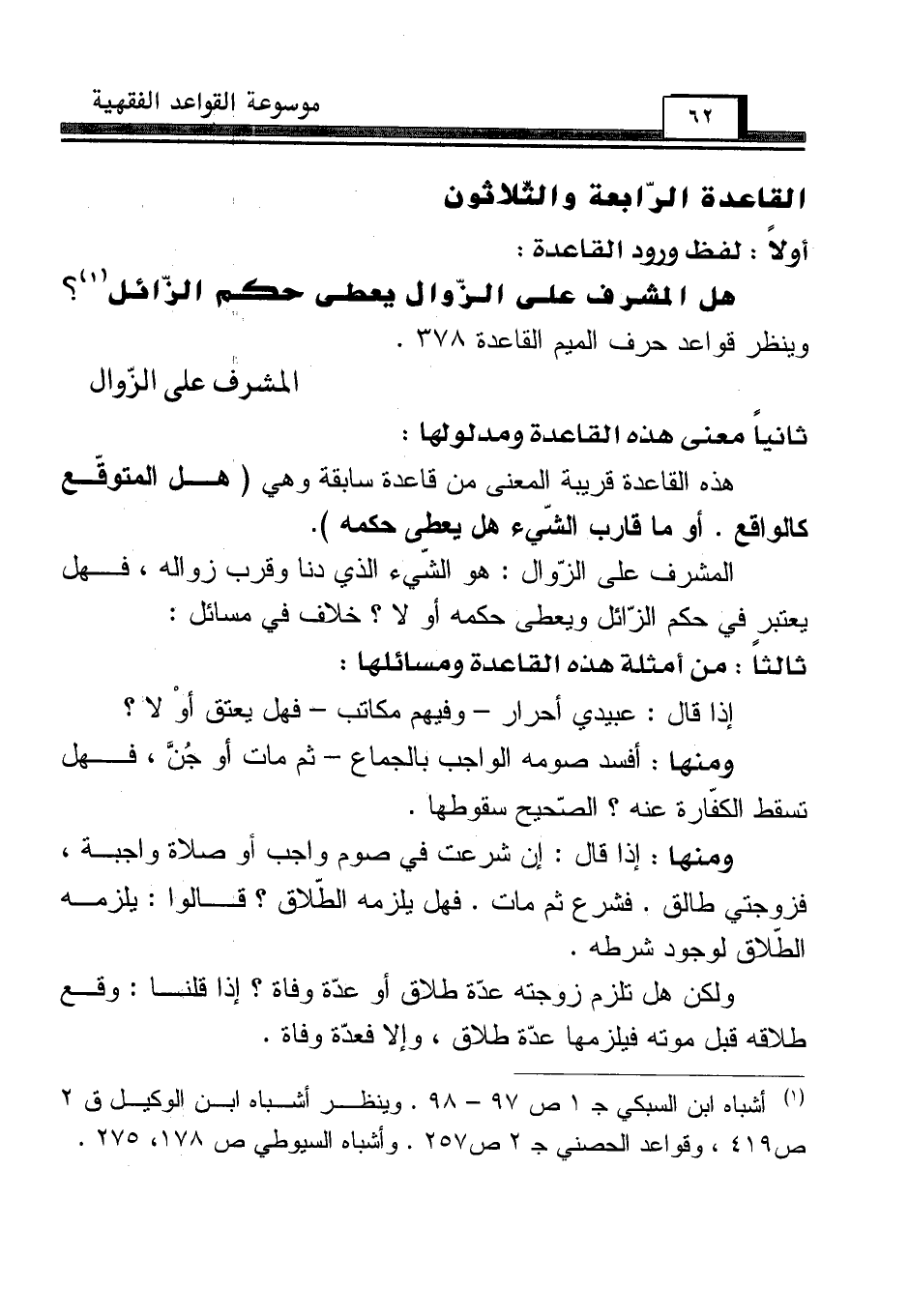 (¬1) أشباه ابن السبكي جـ 1 ص 97 - 98. وينظر أشباه ابن الوكيل ق 2 ص 419، وقواعد الحصني جـ 2 ص 257. وأشباه السيوطي ص 178، 275.