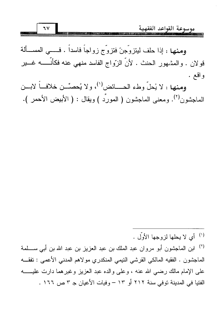ومنها: لا يُحلّ وطء الحائض (¬1)، ولا يُحصِّن خلافاً لابن الماجشون (¬2). ومعنى الماجشون (المورَّد) ويقال: (الأبيض الأحمر).
