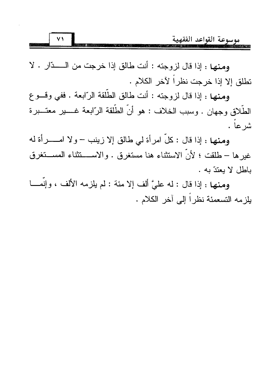 ومنها: إذا قال لزوجته: أنت طالق إذا خرجت من الدّار. لا تطلق إلا إذا خرجت نظراً لآخر الكلام.